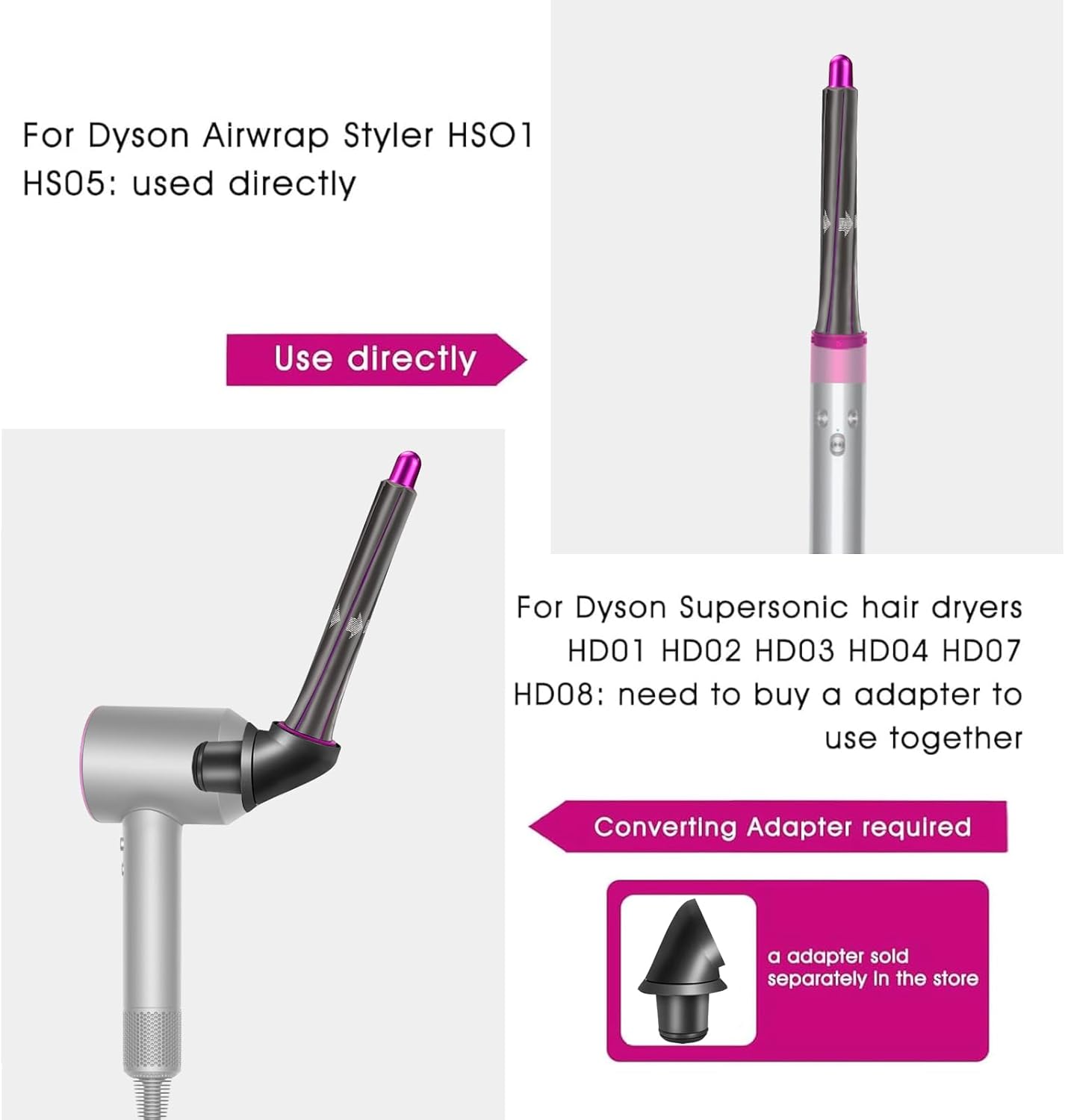 Compatible With: 1 Pair 20mm/0.78 inch Long hair Curling Barrels For Dyson Airwrap HS01,HS05, with Adapter for Dyson Supersonic Hair Dryer HD01 HD02 HD03 HD07 HD08