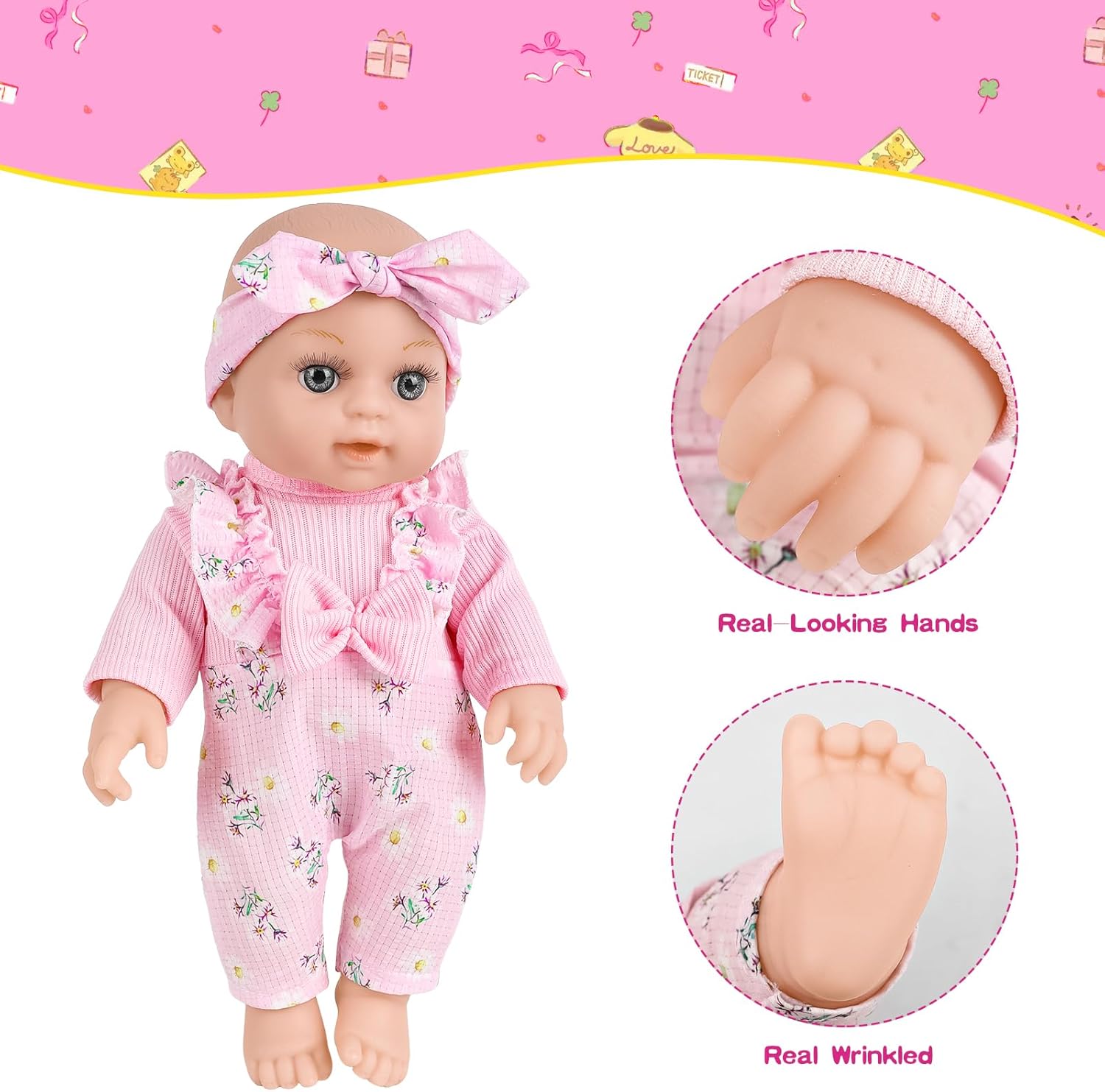 INSPIRING IMAGINATION AND PLAY: Whether your child enjoys pretend play, role-playing as a parent, or simply having a buddy to accompany them during the day, this new born baby doll fits the bill.Your little ones will learn to role-play nurture, love, and care. The dolls clothing can easily be changed helping young ones develop fine motor skills.Please contact us in time if you have any questions about our products.