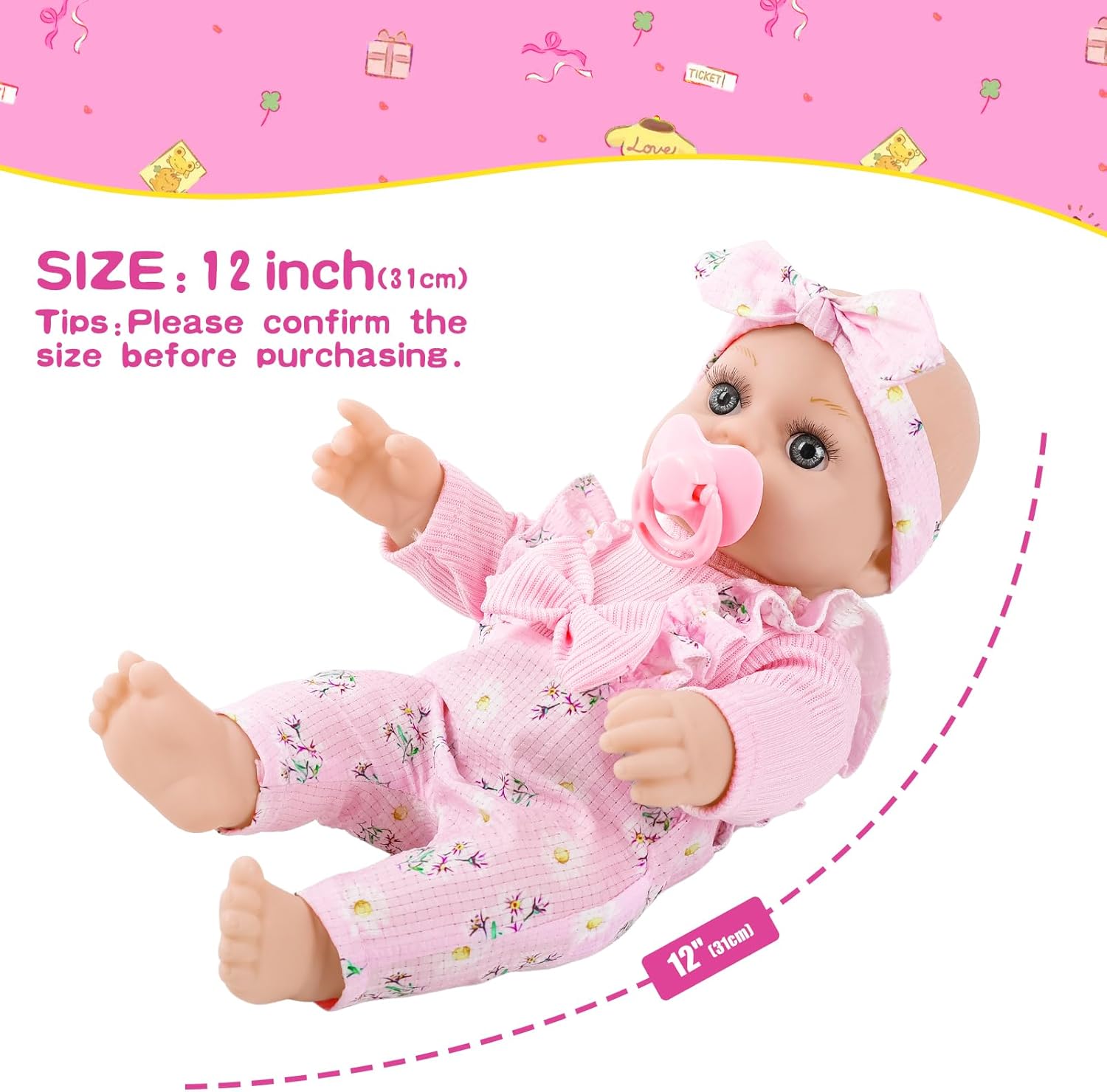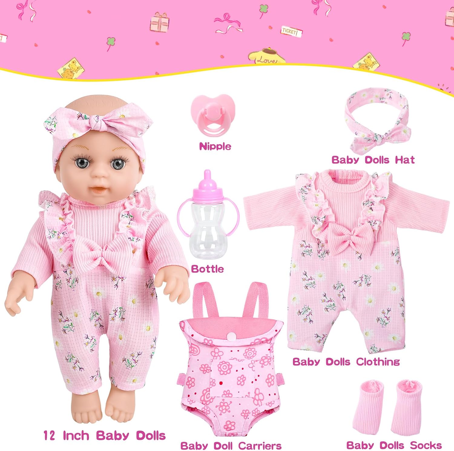 DOTVOSY 12″ Baby Doll Care Gift Set In Box With Dolls Carrier,Baby Dolls With Accessories Include Clothes Socks Bottle And Pacifier Pretend Play Toddler Toys For Kids Age 3+