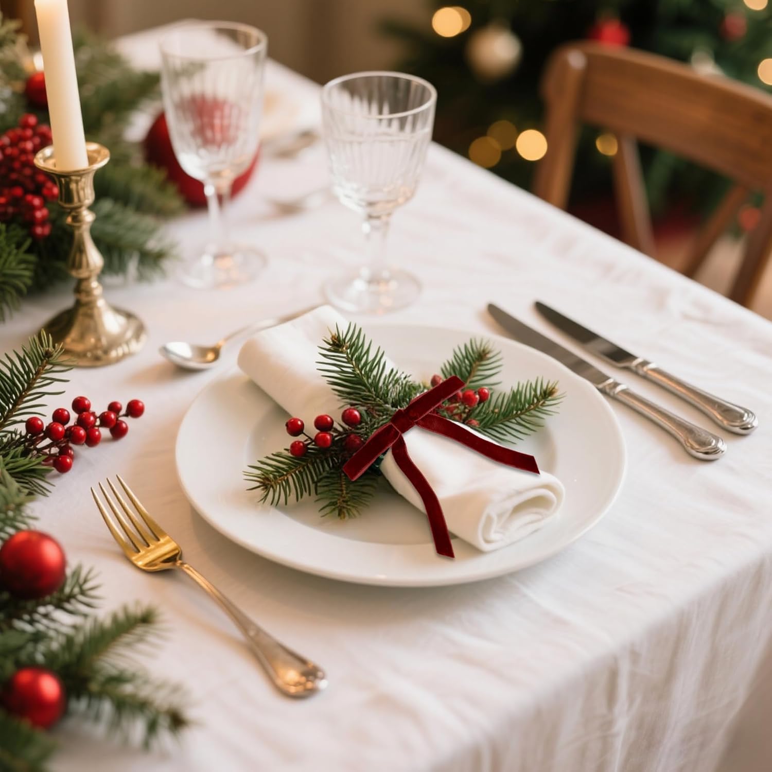 12pcs Velvet bow napkin ring are sufficient to meet your needs for Christmas party table decorations.