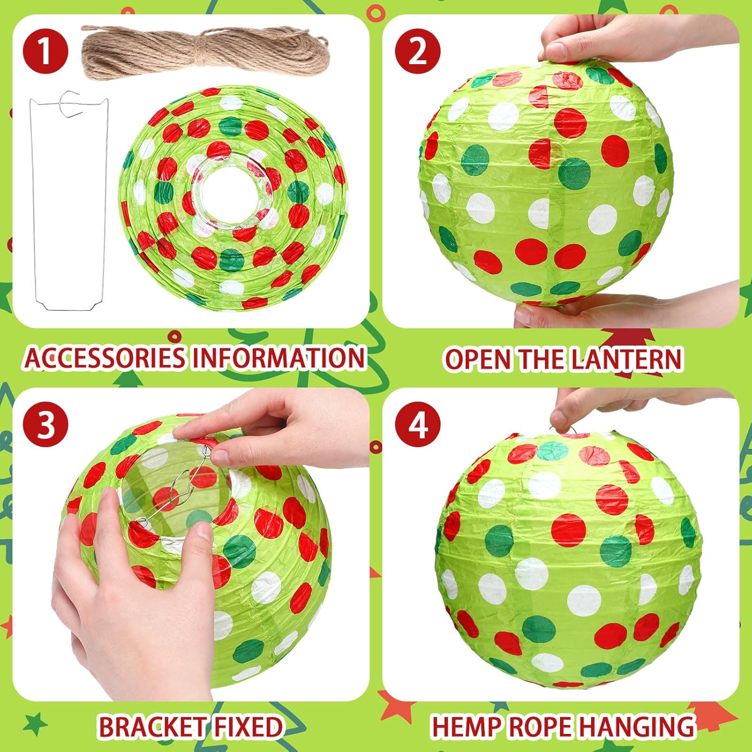 Widely Applied: suitable for Christmas, baby showers, and with a classic color scheme that matches the Christmas theme, these paper lantern decor are good for hanging on porches, hallways, backyards, rooms and wherever you like, addding cheer and cheer to the atmosphere this Christmas