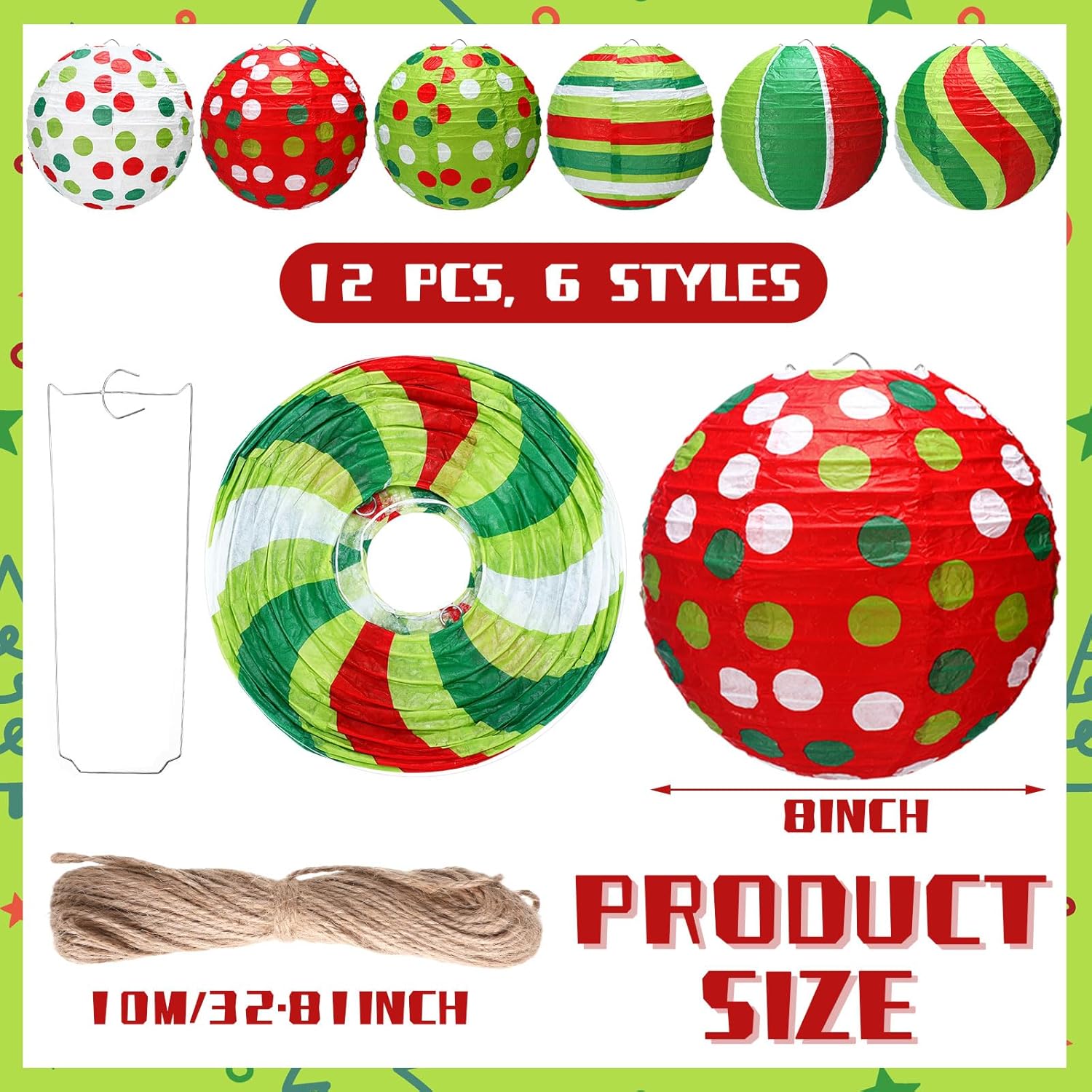 Widely Applied: suitable for Christmas, baby showers, and with a classic color scheme that matches the Christmas theme, these paper lantern decor are good for hanging on porches, hallways, backyards, rooms and wherever you like, addding cheer and cheer to the atmosphere this Christmas