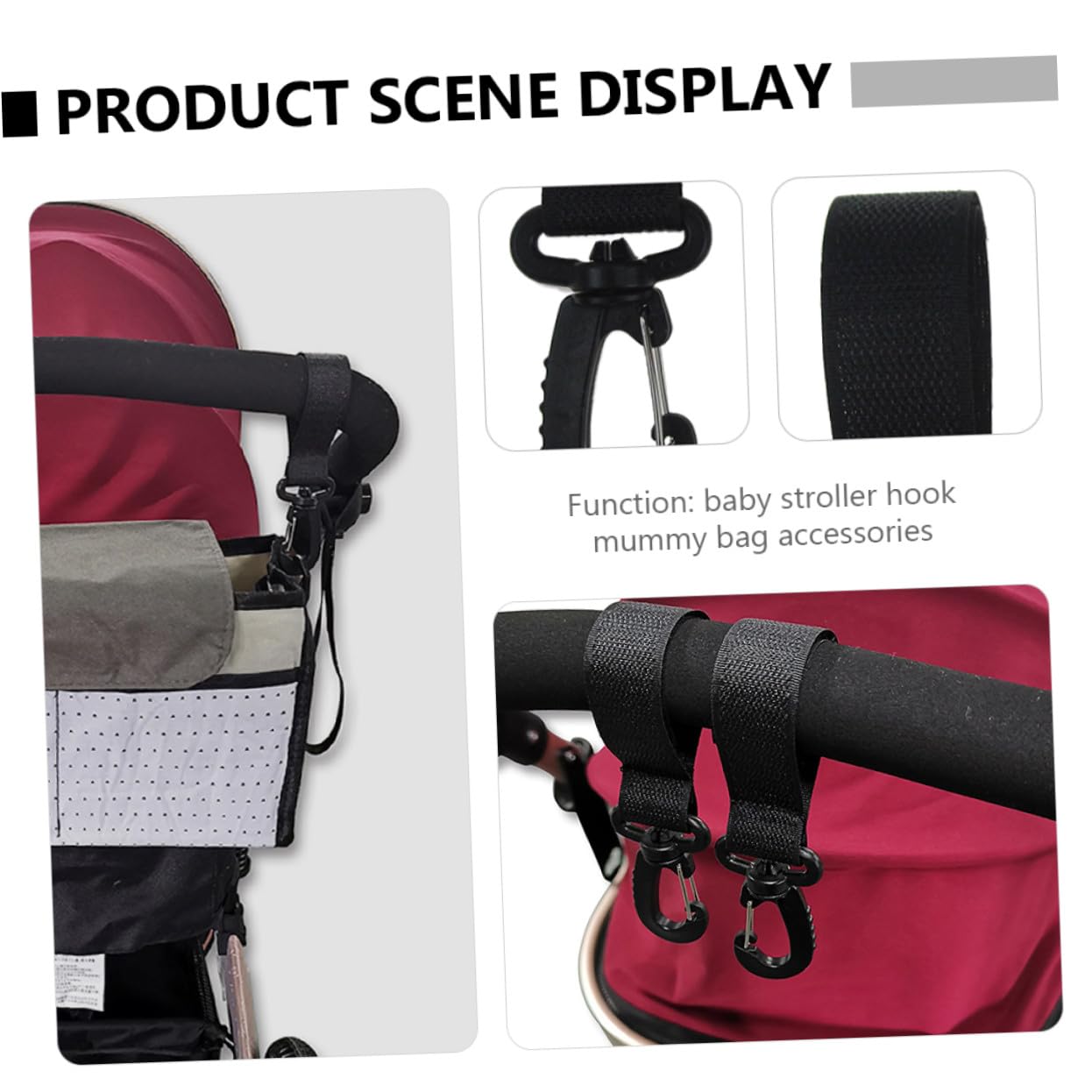 12pcs Rotatable Stroller Hooks for Pushchair Multi-Function Hanging Bag Hangers with Straps Black Clips for Diaper Bags Shopping Wheelchair and Pram Accessories