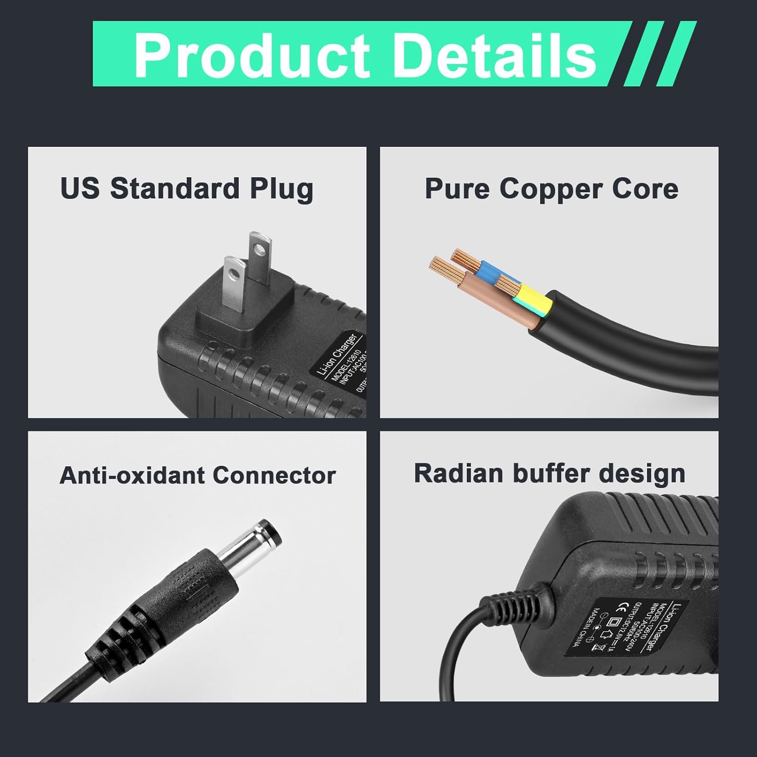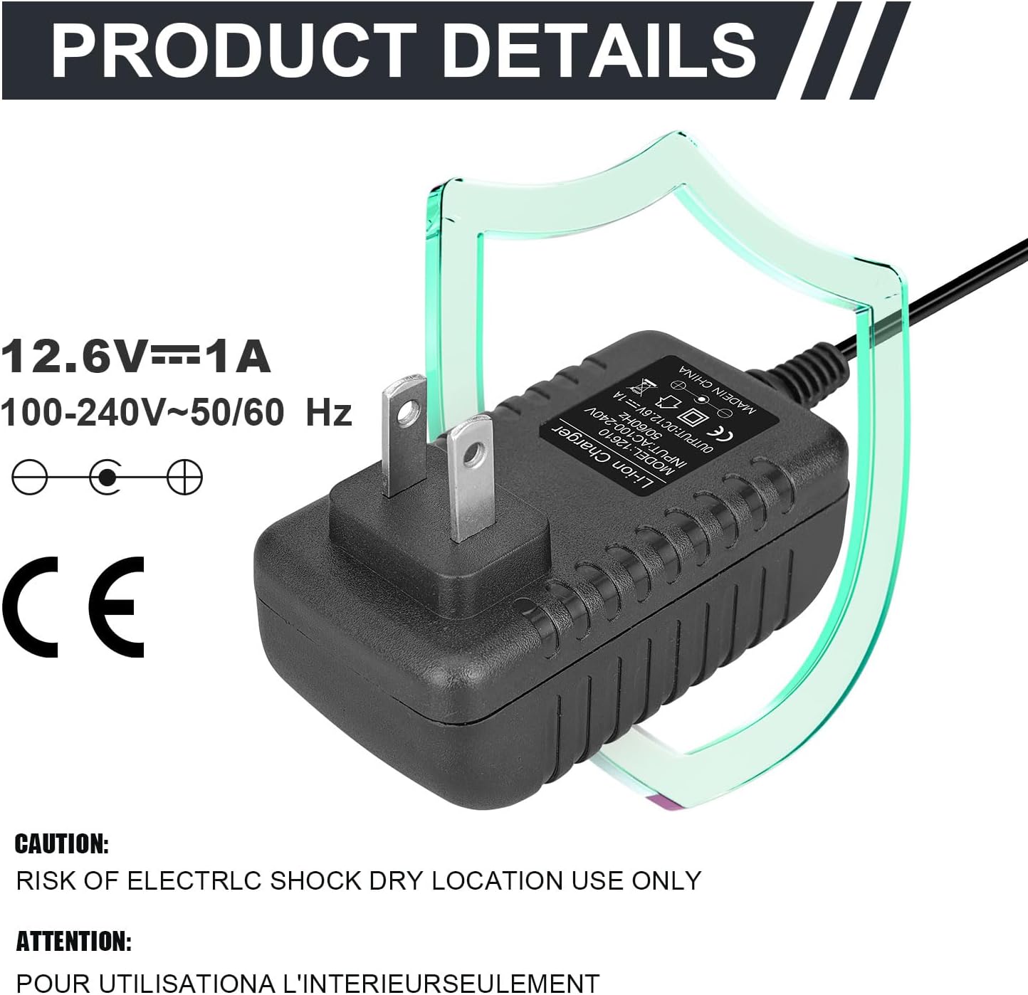 1. Massage gun charger input: 100-240V~50/60Hz. Output: DC 12.6V 1A 5.5mm x 2.1mm DC head, 4.0 * 1.7mm, 3.5 * 1.35mm;