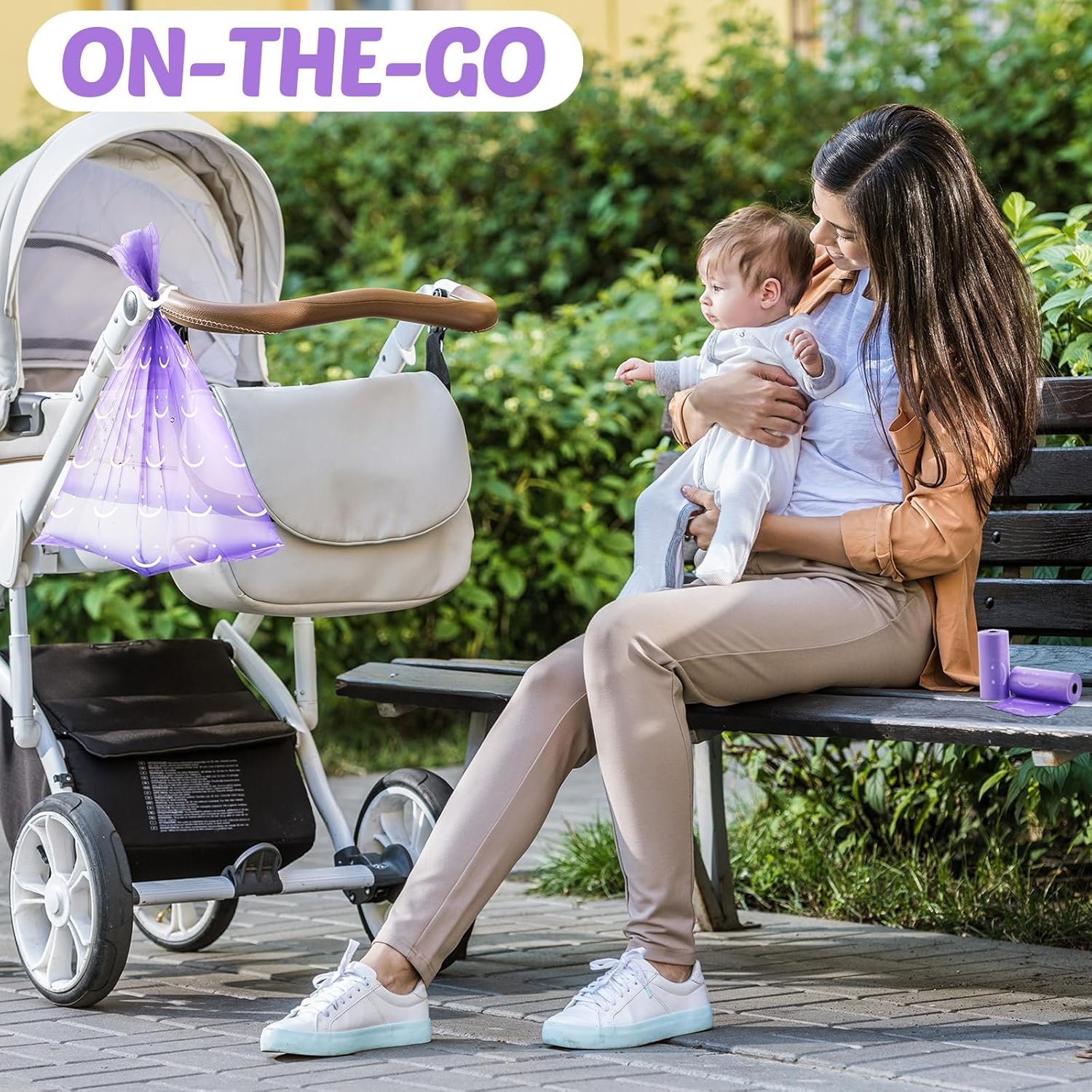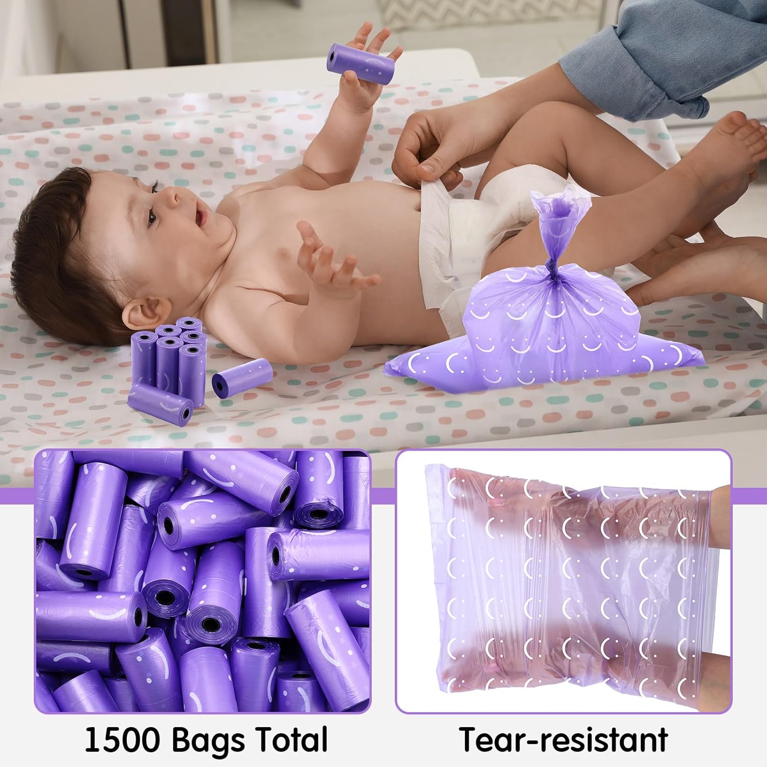Plentiful Quantity for Use: the package contains a total of 1500 purple baby diaper bags disposable, 15 pieces per roll, 100 rolls in total, the quantity is sufficient to satisfy your daily use, replacement and carrying needs