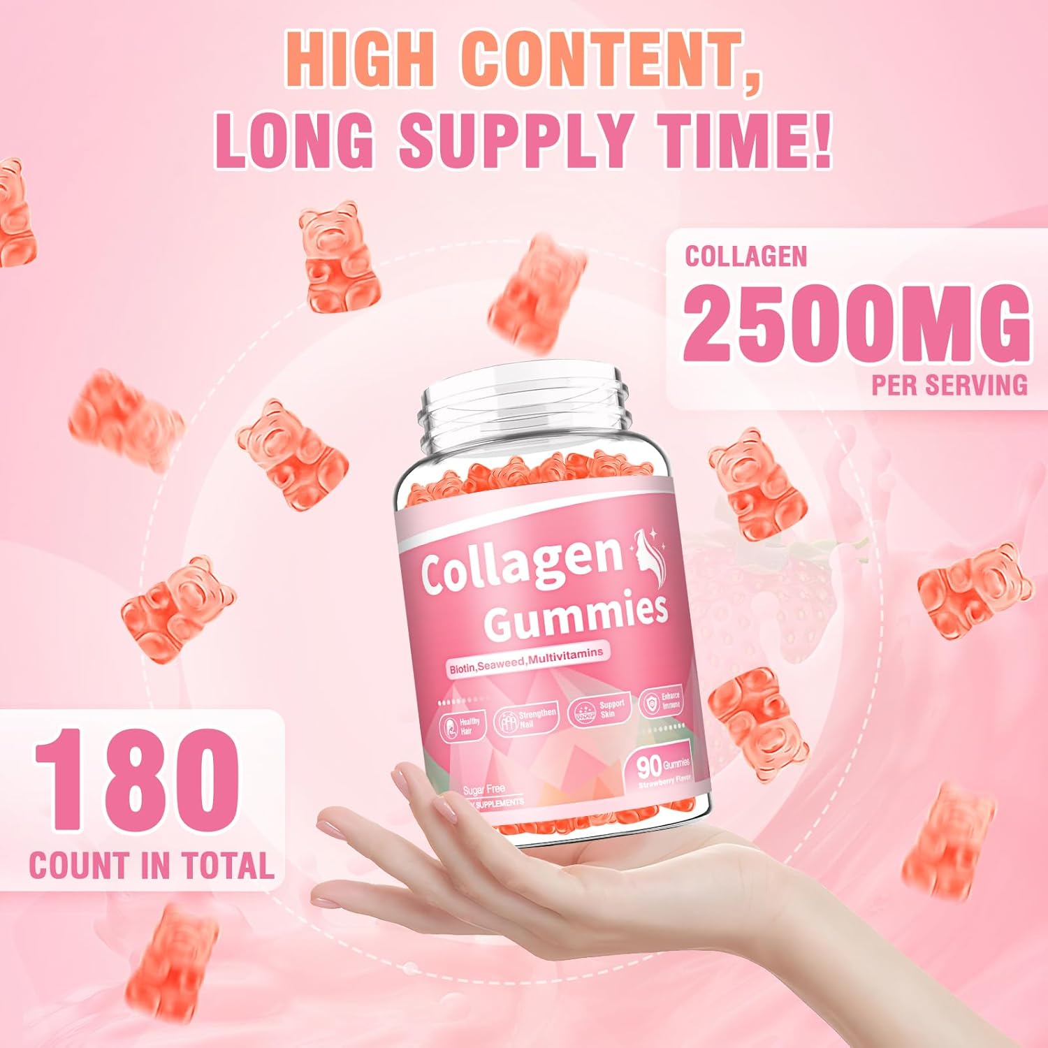 Strengthen Joints & Bones:The collagen in collagen supplements for women can help repair and maintain cartilage tissue and improve joint flexibility.The hyaluronic acid in collagen supplements for men,helps lubricate joints and protect them from wear and tear.The vitamin D in collagen gummies can promote calcium absorption and help increase bone density.Biotin collagen gummies allows you to effectively support the ealth of joints and bones,maintain a strong body and flexible movement ability
