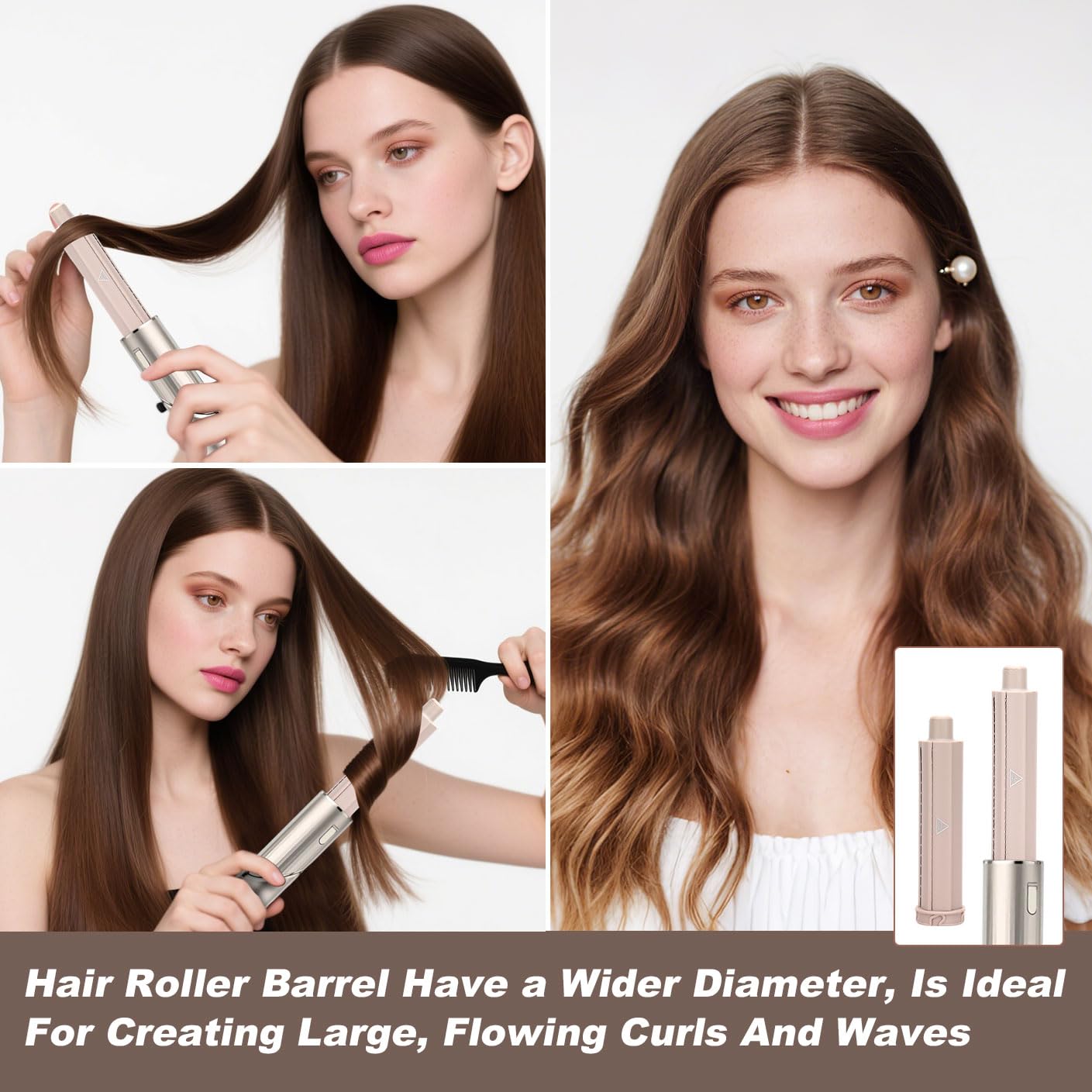 【Loose, Voluminous Curls】The hair roller barrel have a wider diameter, is ideal for creating large, flowing curls and waves with added volume, reducing frizz and heat damage while locking in a soft, shiny finish.