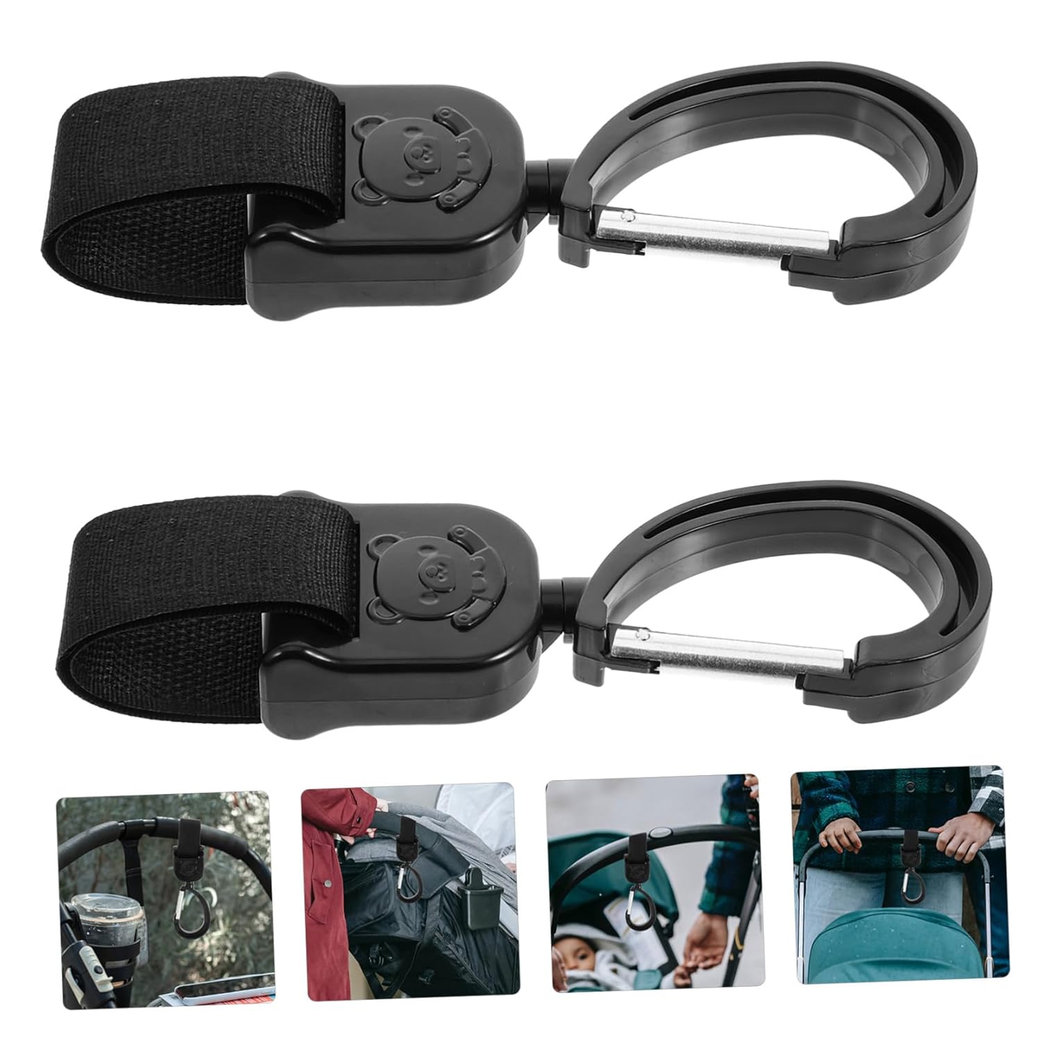 Hanging stroller hooks–universal and useful, these stroller hooks are designed to fit various types of strollers, simple to use,rotating universal stroller hooks