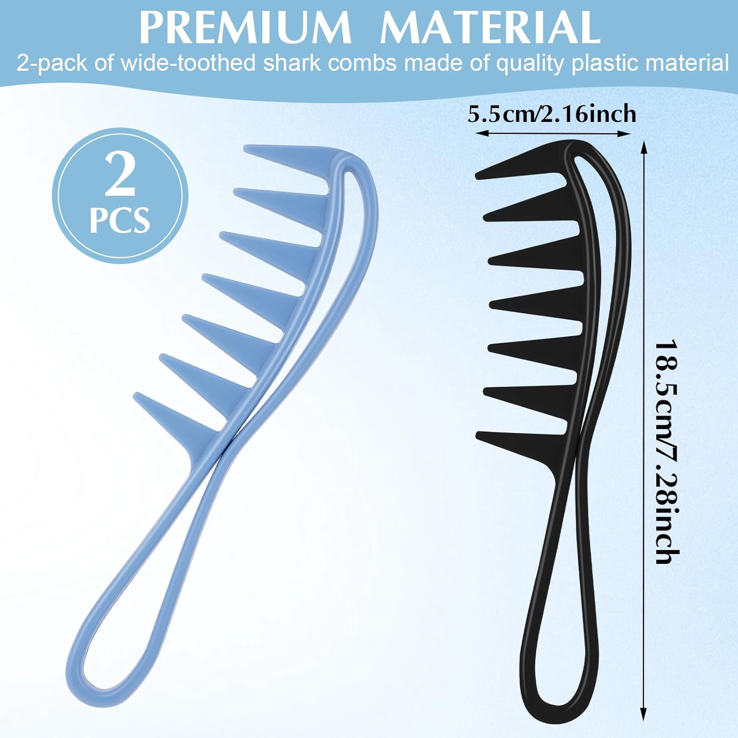 2 Piece Wide Tooth Comb Curling Shark Combs Hair Styling Accessories Professional Salon Afro Coarse Comb Anti-Static Durable Hairdressing Tool for Men Women Styling