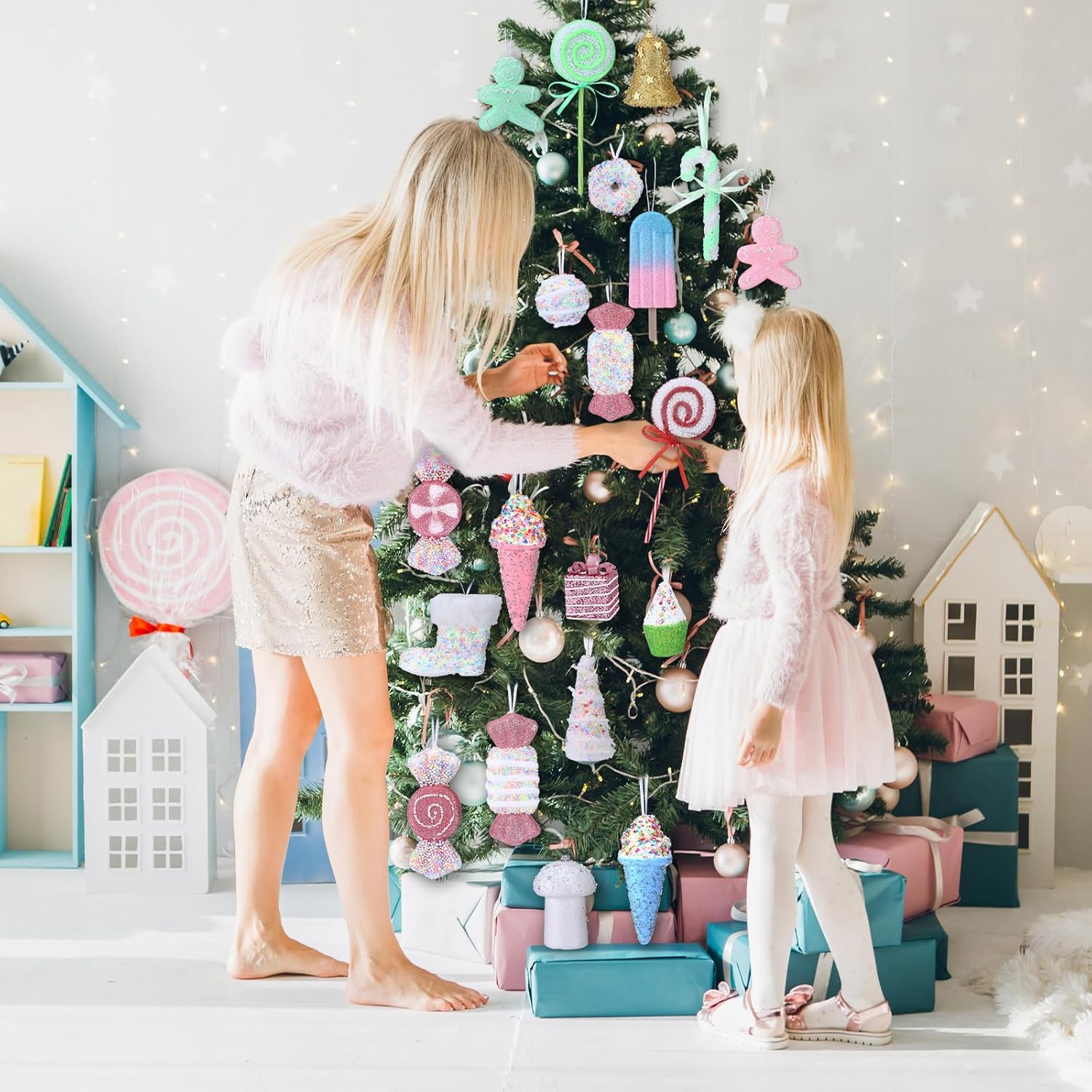 Charming Details: available in cute, funny shapes with pastel colors, these decorations ranging from 3.15 to 10.43 inches, introduce a sweet and cozy holiday ambiance to your home; Featuring designs like candies, lollipops, donuts, and more, each piece is intricately detailed and colorful, making them an excellent holiday gift choice