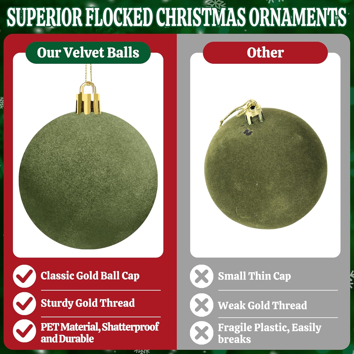[Velvet Design] These Christmas decoration balls feature a flocked design that adds beauty to your holiday decorations. The soft, flocked texture adds a touch of elegance to your Christmas tree, creating a vintage and beautiful effect