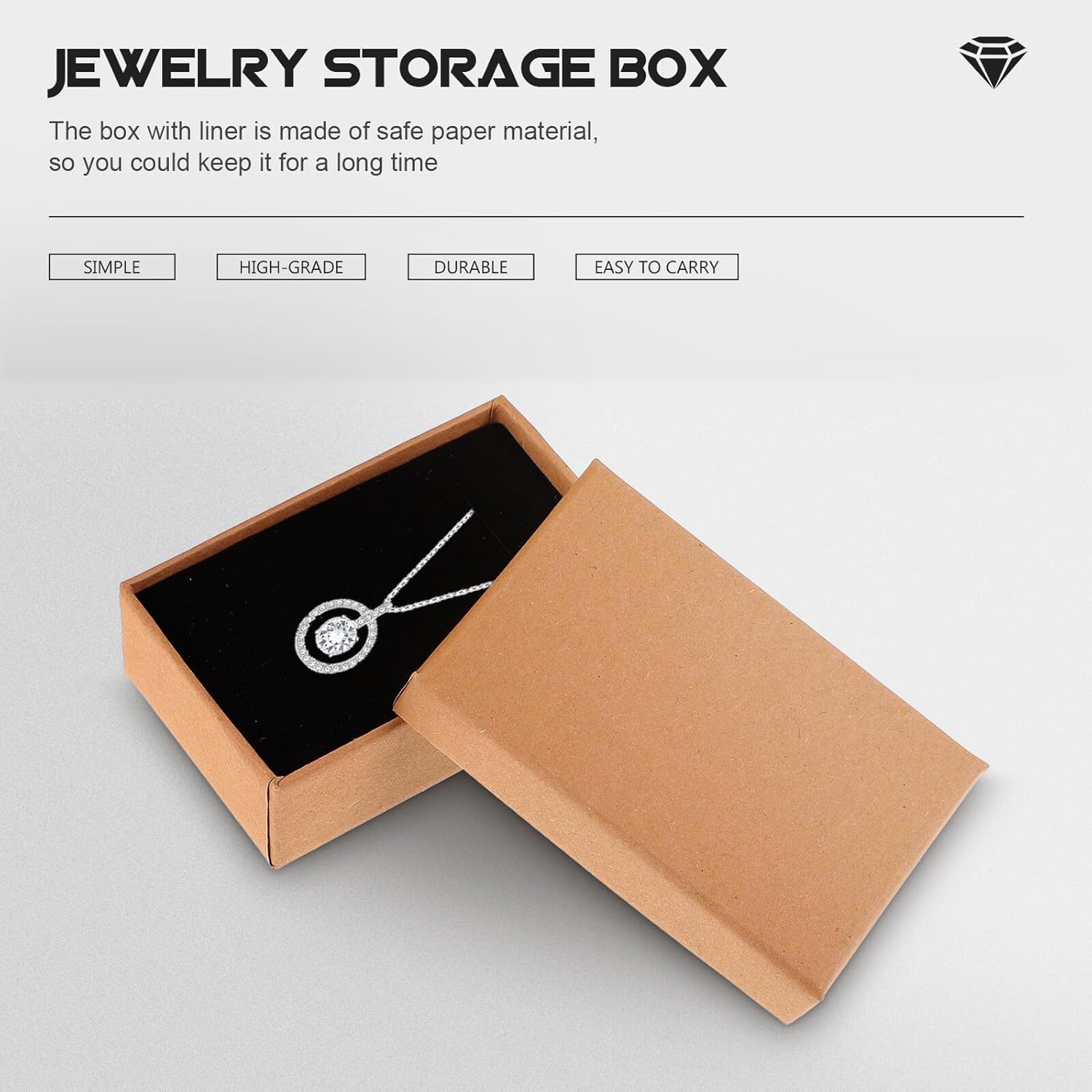 – The jewelry box with liner inside is made from paper material for safe and use. Comfortable to touch.