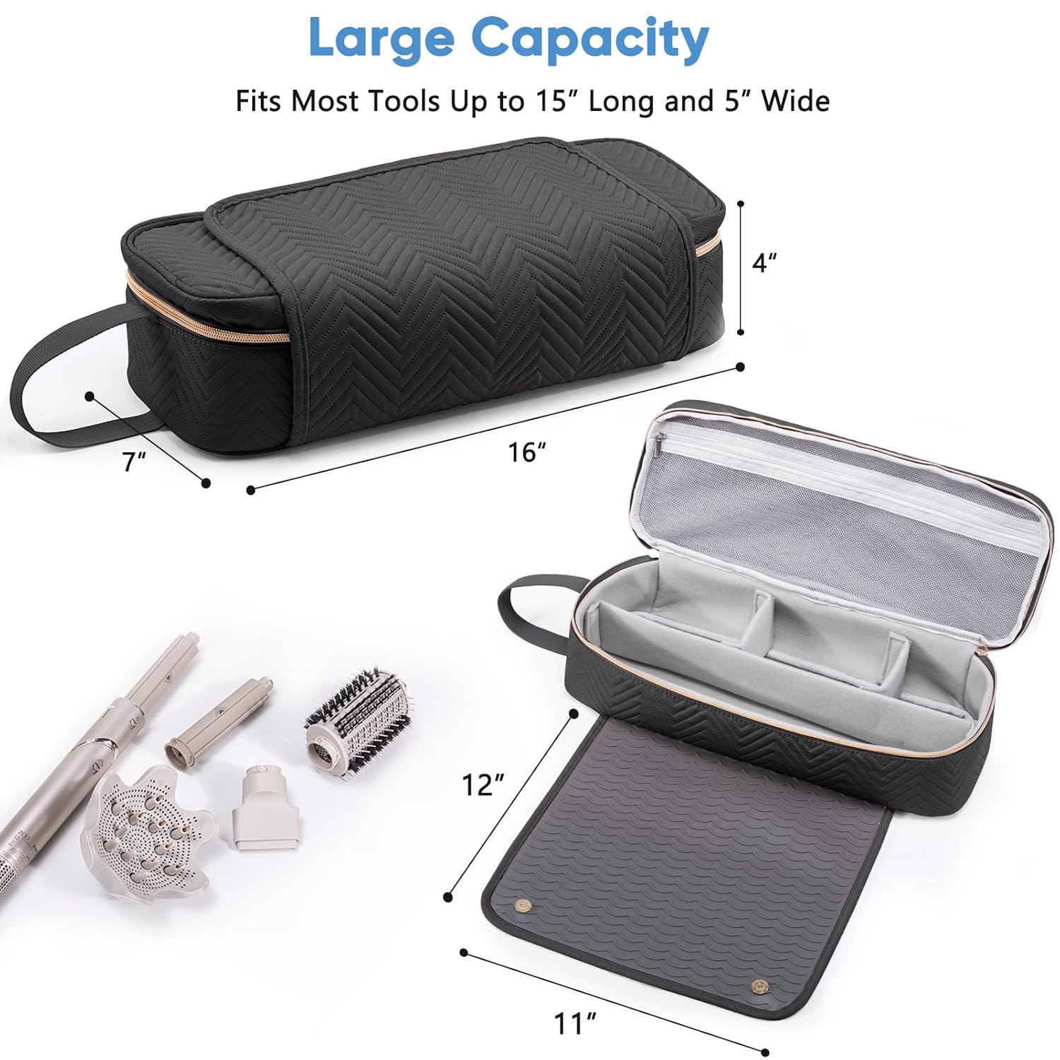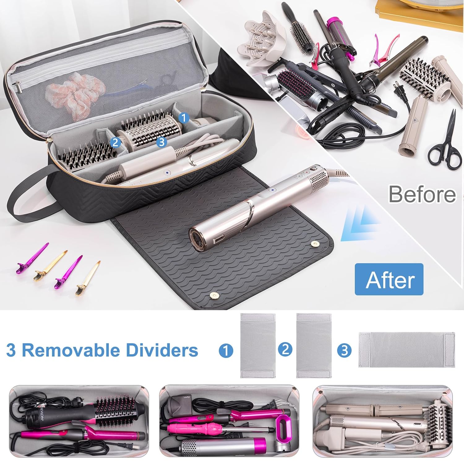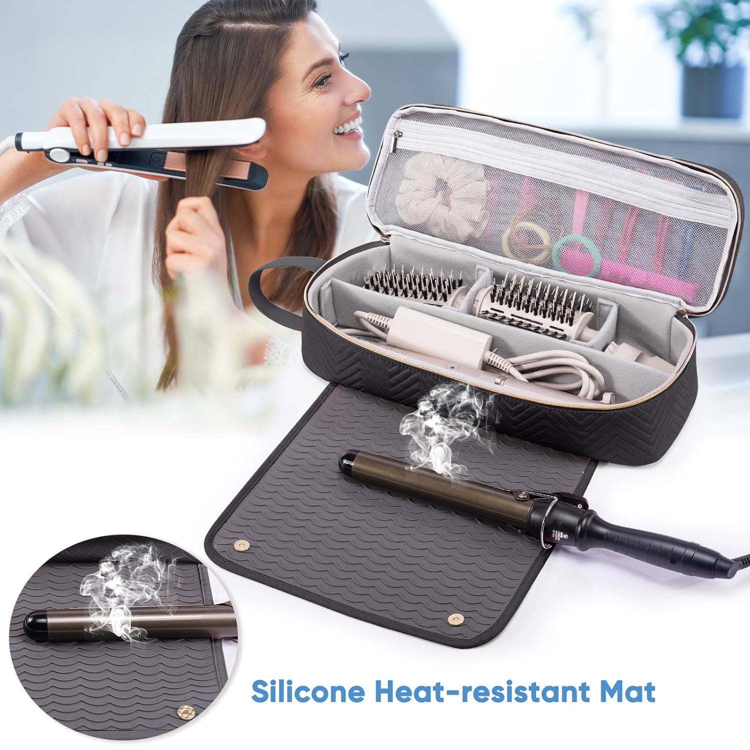 ✨Multipurpose Hair Travel Bag – This 2-in-1 design hair tool holder combines a hair case with a large open main compartment and a silicone heat-resistant mat. These must-have travel essentials help you carry your hair tools wherever you go.