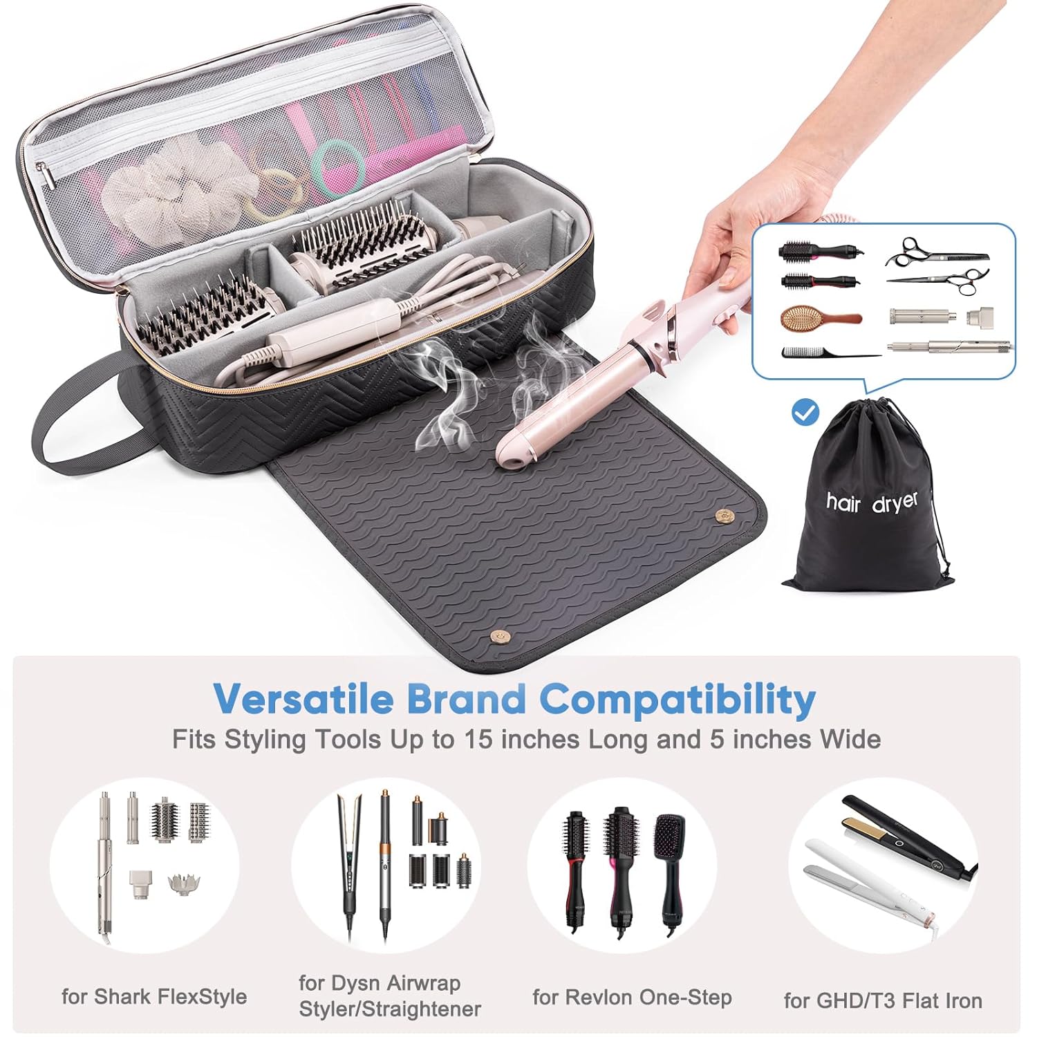✨TWO SIZES – The medium size is W16″XD7″XH4″,and large size is W14″XD6.5″XH3″.Hold various everyday haircare accessories such as flat irons, curling irons, hair straighteners, brushes, curling wands, and other styling tools. Please measure your hair tools before ordering. Compatible with Shark hair dryer, Dy son air wrap Style, Superso nic Hair Dryer, Sha rk Flex style case shar k Flex style hairdryer and styler, sharrk air wrap, t3 curling iron, lage hair straightener.