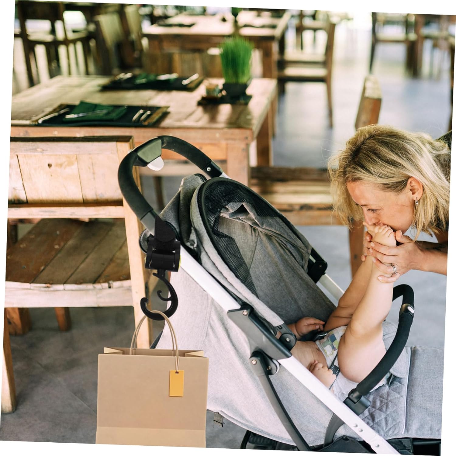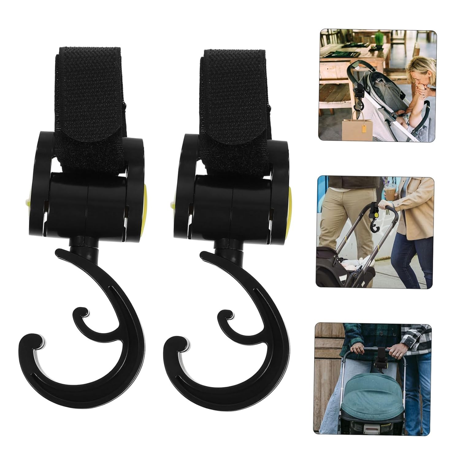 2Pcs Stroller Hooks Multi-Purpose Rotating Plastic Hanging Bag Clips for Diaper Bags Easy Install Strong Sturdy Hooks for Strollers and Bikes