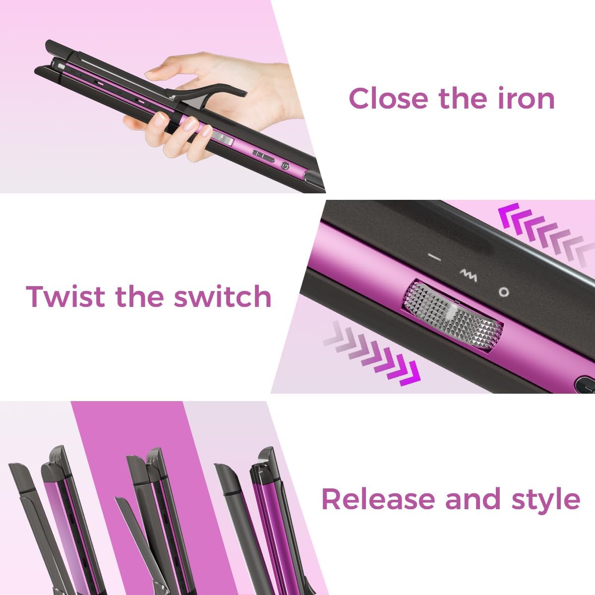 【3-in-1 Hair Straightener, Curler & Crimper Styling Tool】 With its innovative 3-in-1 multifunctional design, the PRITECH hair straightener, curling iron, and crimper tool lets you create endless hair styles—sleek straight looks, soft curls, beach waves, or defined crimps. This flat iron curling iron combo heats up quickly and saves time for busy mornings or professional hairstyling. The all-in-one straightener curler crimper is ideal for women who want versatility, convenience, and salon-quality styling in one compact ceramic hair tool.