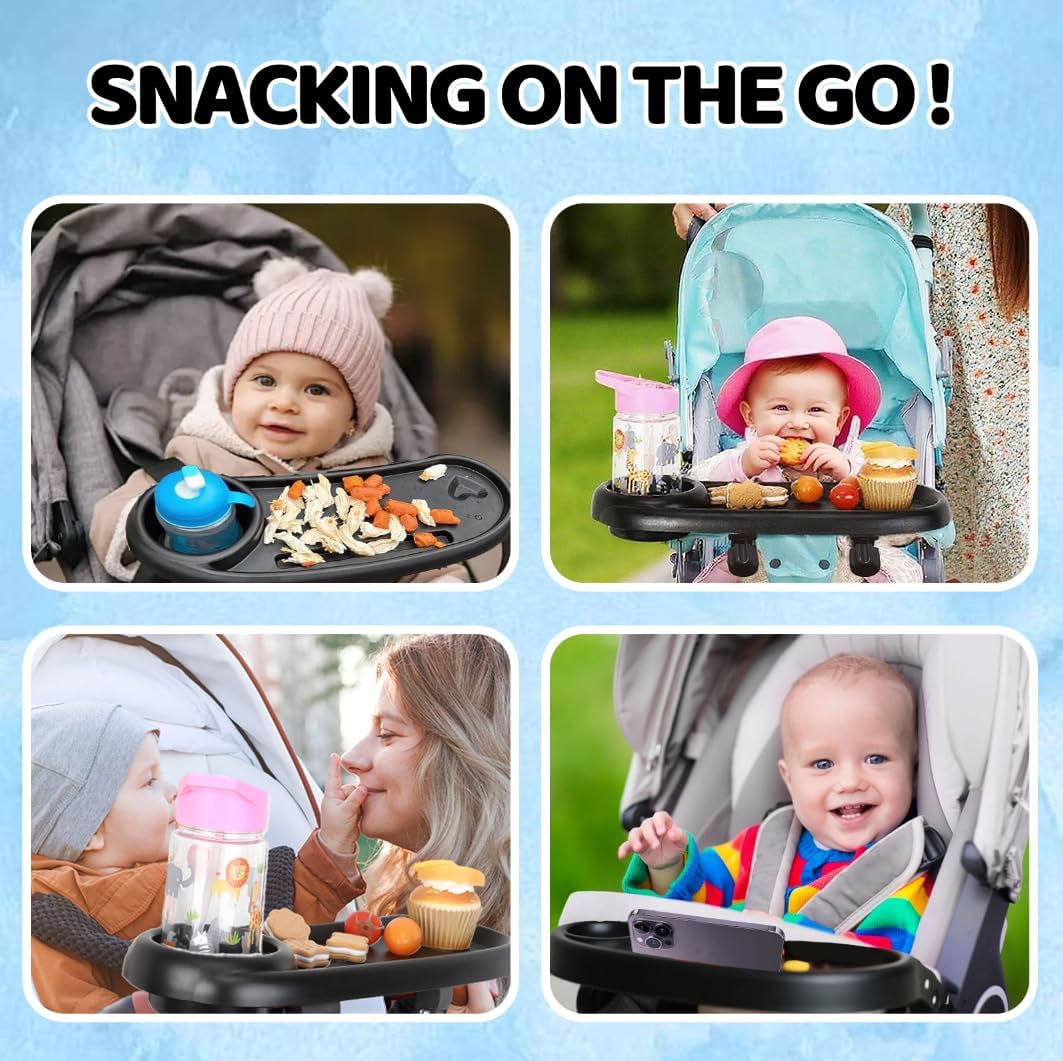 3-in-1 Universal Baby Stroller Snack Tray Accessory, with Phone Holder and Cup Holder, Detachable Baby Travel Equipment Accessories