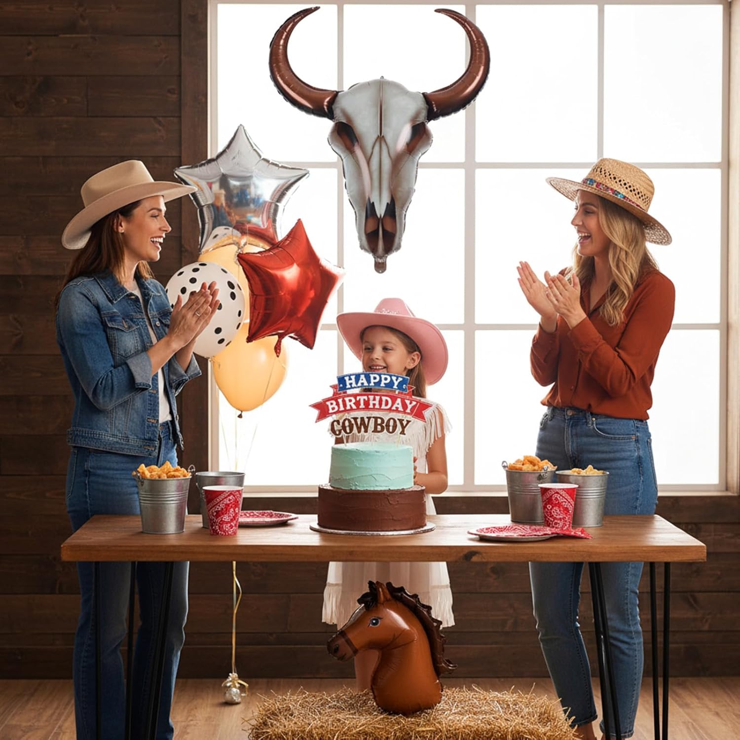【Western Style Decorations】 Each western party decoration measures approximately 25.6 x 31.5 inches, significantly larger than standard party balloons. The eye-catching design of these rodeo theme party decorations creates a Western visual impact. The cowgirl birthday party decorations, whether used alone or in a balloon arch, bring a rich feel to any event.