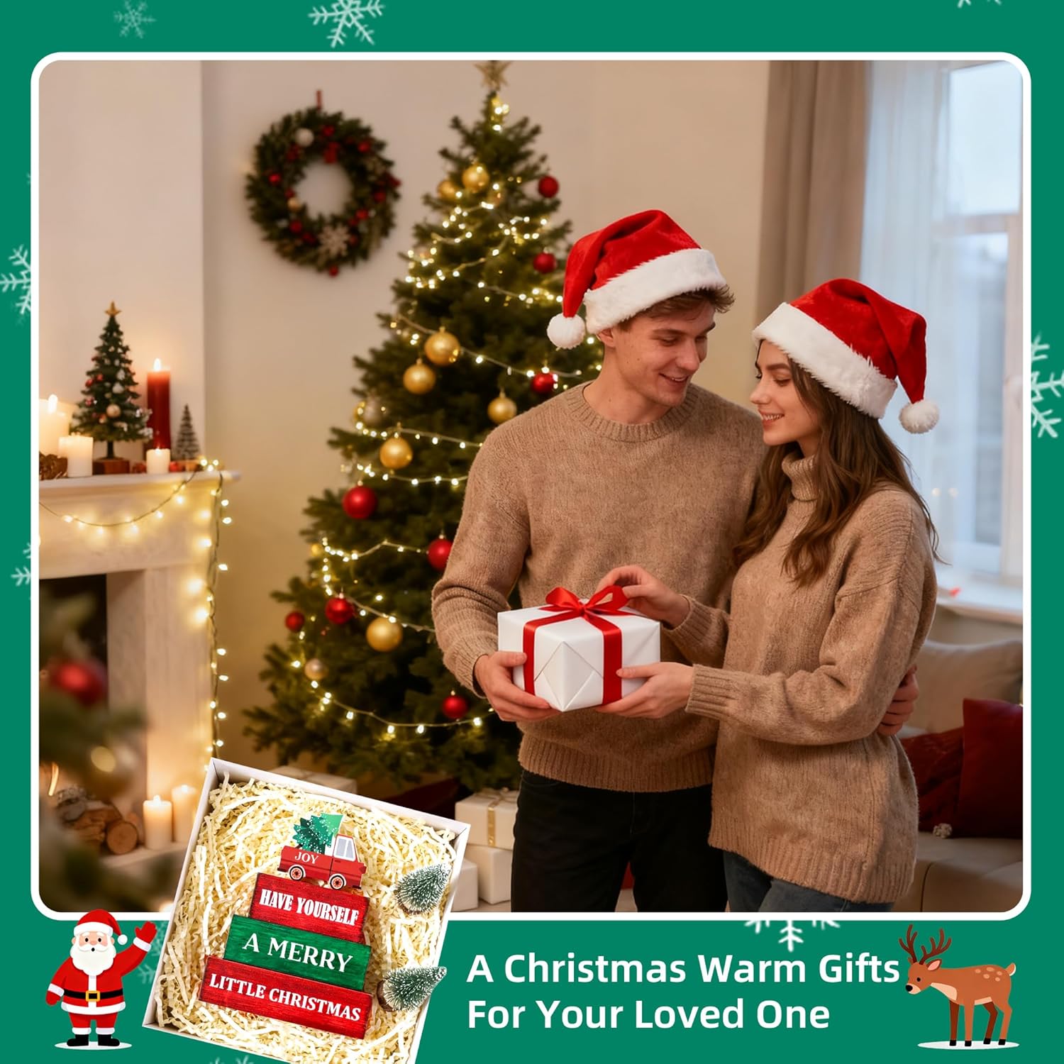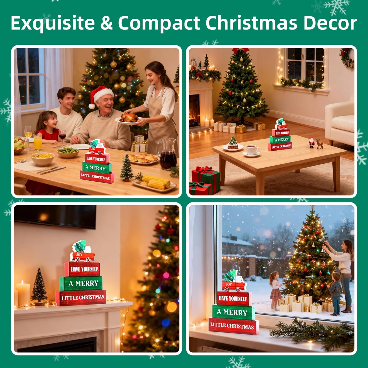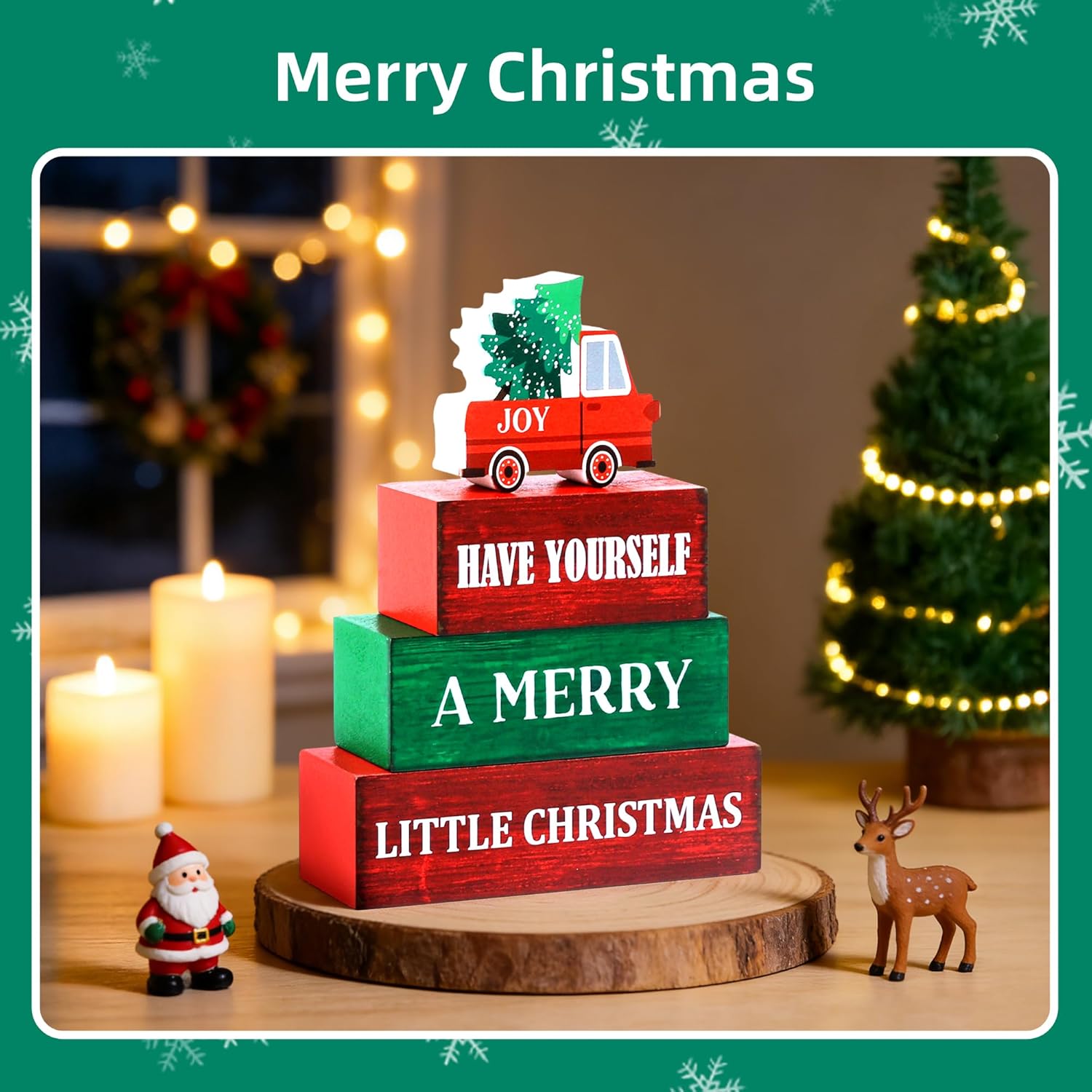 Christmas Tiered Tray Decorations Gifts: Set of 4 rustic wooden signs, including 1 christmas tree truck sign and 3 wooden decoration have yourself a merry little christmas, the christmas centerpieces are suitable for christmas parties or welcome the winter season at home.