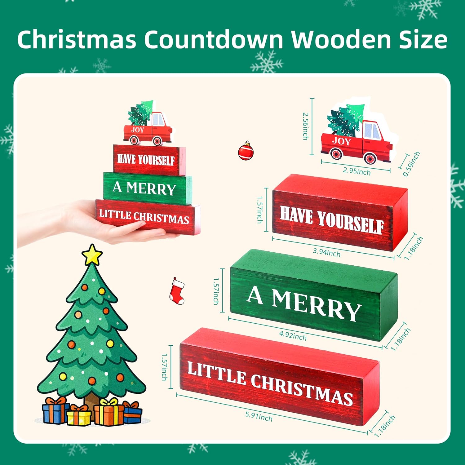 Appropriate Size: With a christmas tree truck sign measuring 2.2 x 3.3 inches, 3 christmas wooden centerpieces of different sizes, 6 x 1.2 x 1.6 inches, 5 x 1.6 x 1.2 inches and 4 x 1.2 x 1.6 inches.