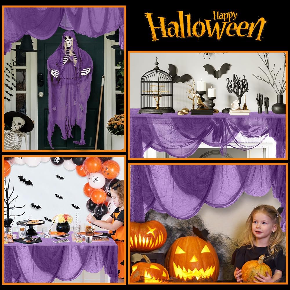 Vellibring 400″ x 85″ Halloween Creepy Cloth Decoration,Large Purple Spooky Fabric Cloth Scary Gauze Cheesecloth for Haunted House Halloween Party Yard Wall Indoor Outdoor Decor