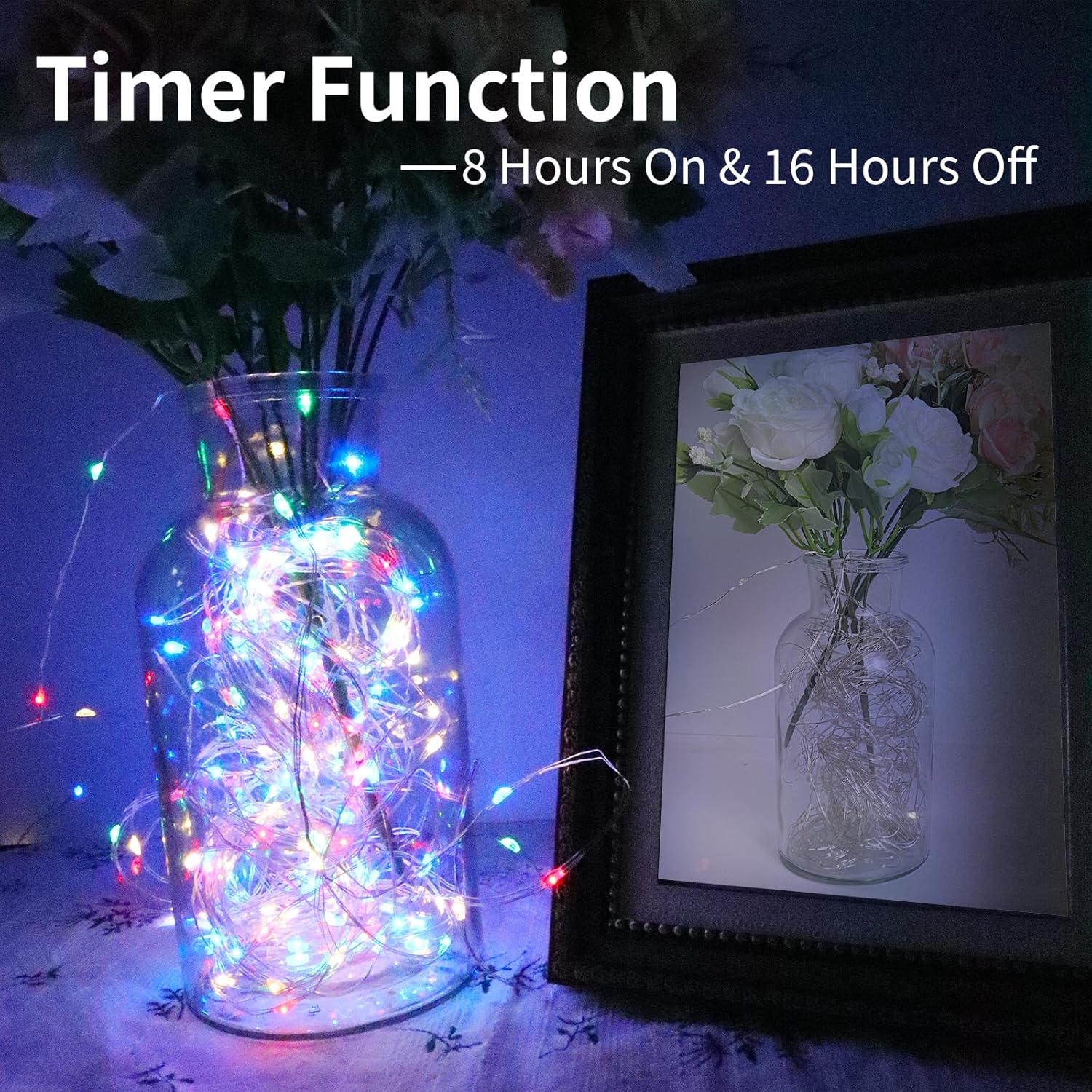 The fairy string lights equipped with 8 lighting modes, timing function, 4 Levels brightness adjustable, well as memory function. Great for weddings, camping, parties, barbecues, banquets, birthdays, christmas or anniversary celebrations decor.