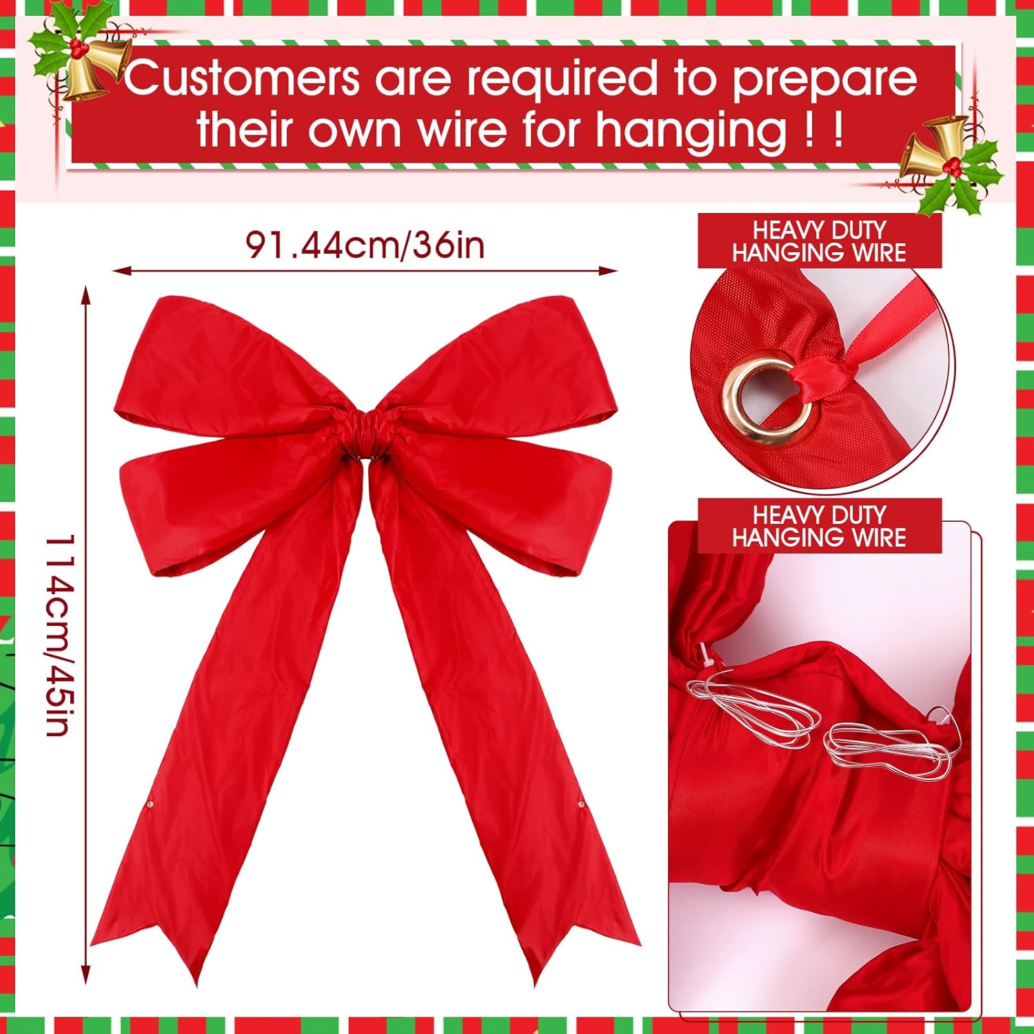 Waterproof Material: crafted from heavy-duty nylon fabric that is waterproof and UV-resistant, this bow keeps its bold red color and elegant shape even under rain, snow, or winter wind; Built to last for the entire holiday season without fading or sagging