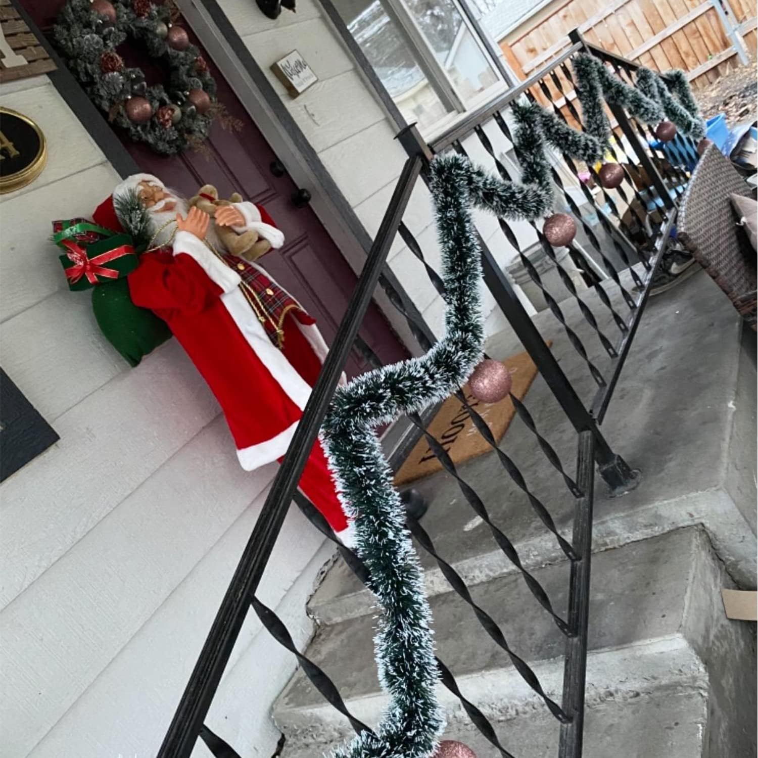 Material:The outside of the green garland is made of lightweight plastic,a premium material that is fluffy and lightweight;the green wreath has a bendable core in the middle that can be twisted into the shape you want