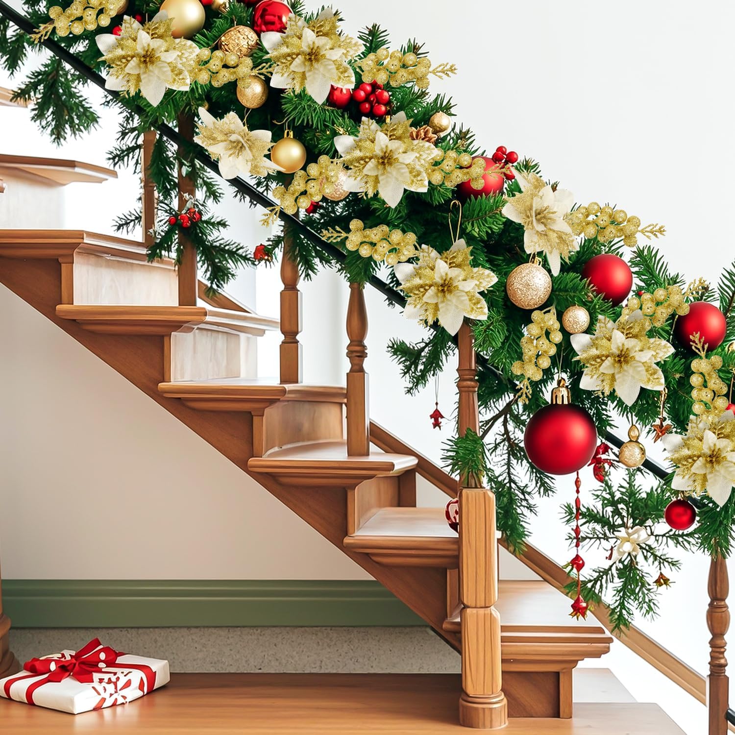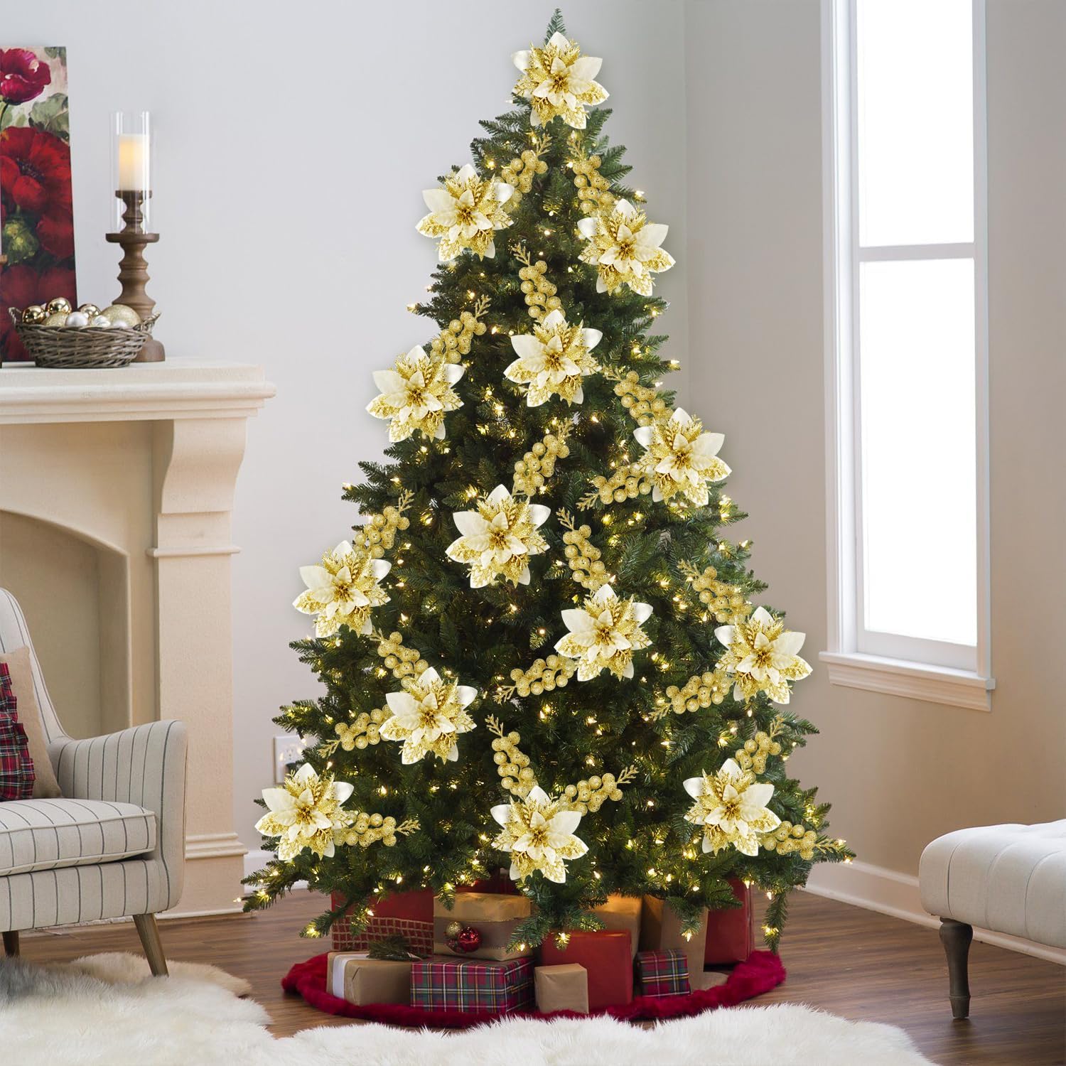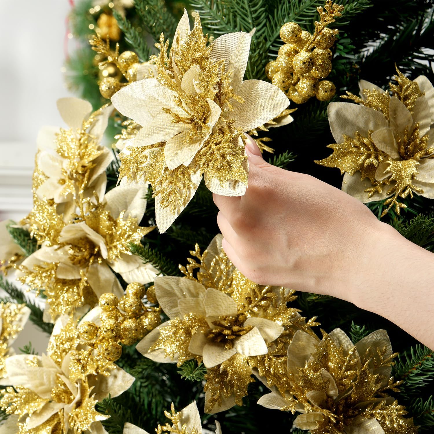 PREMIUM DESIGN: Shimmering glitter-adorned petals create eye-catching sparkle and reflect light beautifully, adding festive elegance to your Christmas decor