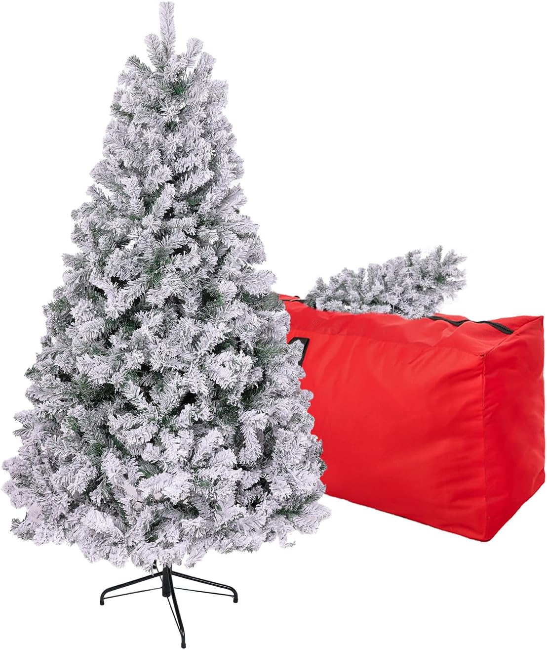 5ft Flocked Artificial Christmas Tree, Arbol de Navidad with 600 Branch Tips, Fake Christmas Tree, Premium Spruce Xmas Tree with Fold-Able Metal Base Stand