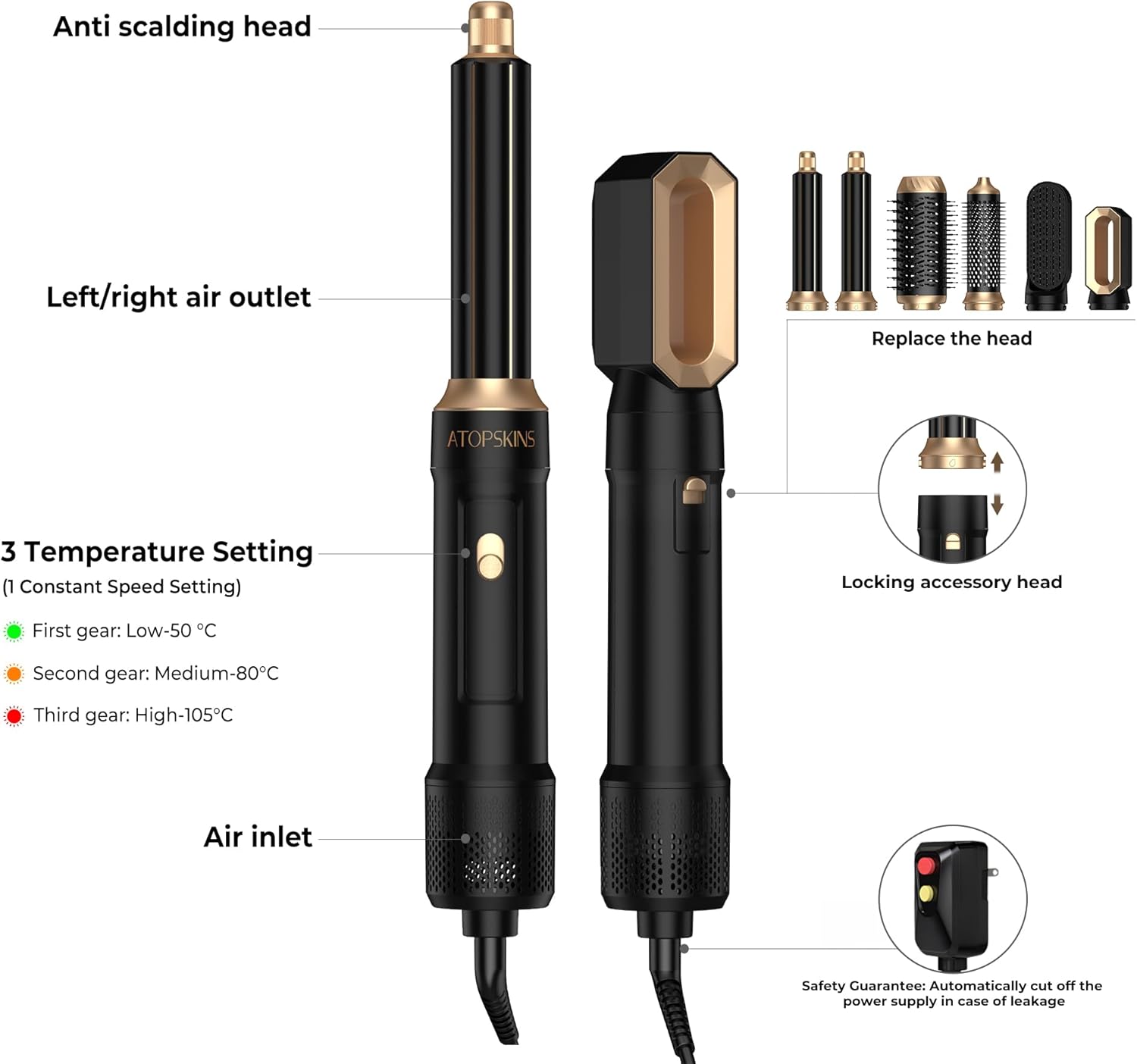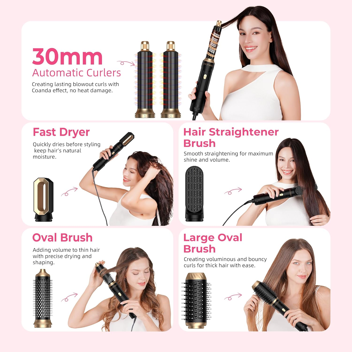EASY-SWAP ATTACHMENTS & SIMPLE USE: Quickly interchange 6 specialized brush heads (for curling, straightening, inward curls, bangs, scalp massage, and focused airflow) in just a few steps. Enjoy diverse styling results at home – from defined curls to smooth straight styles and soft bangs – ideal for everyday use and various events.