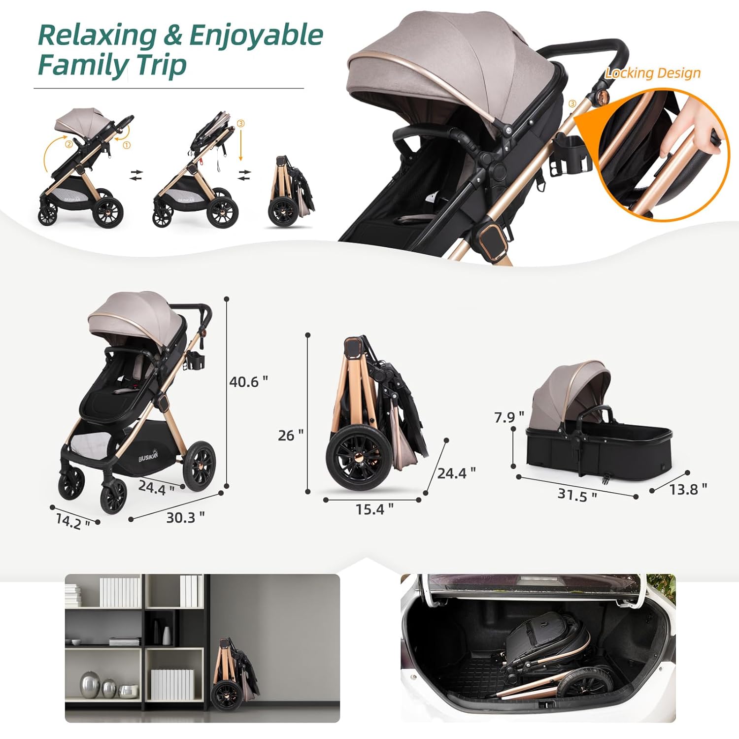 BIUSIKAN’s 6-in-1 convertible bassinet baby stroller evolves with your baby, blending comfort, safety, and effortless convenience into every cherished outing.
