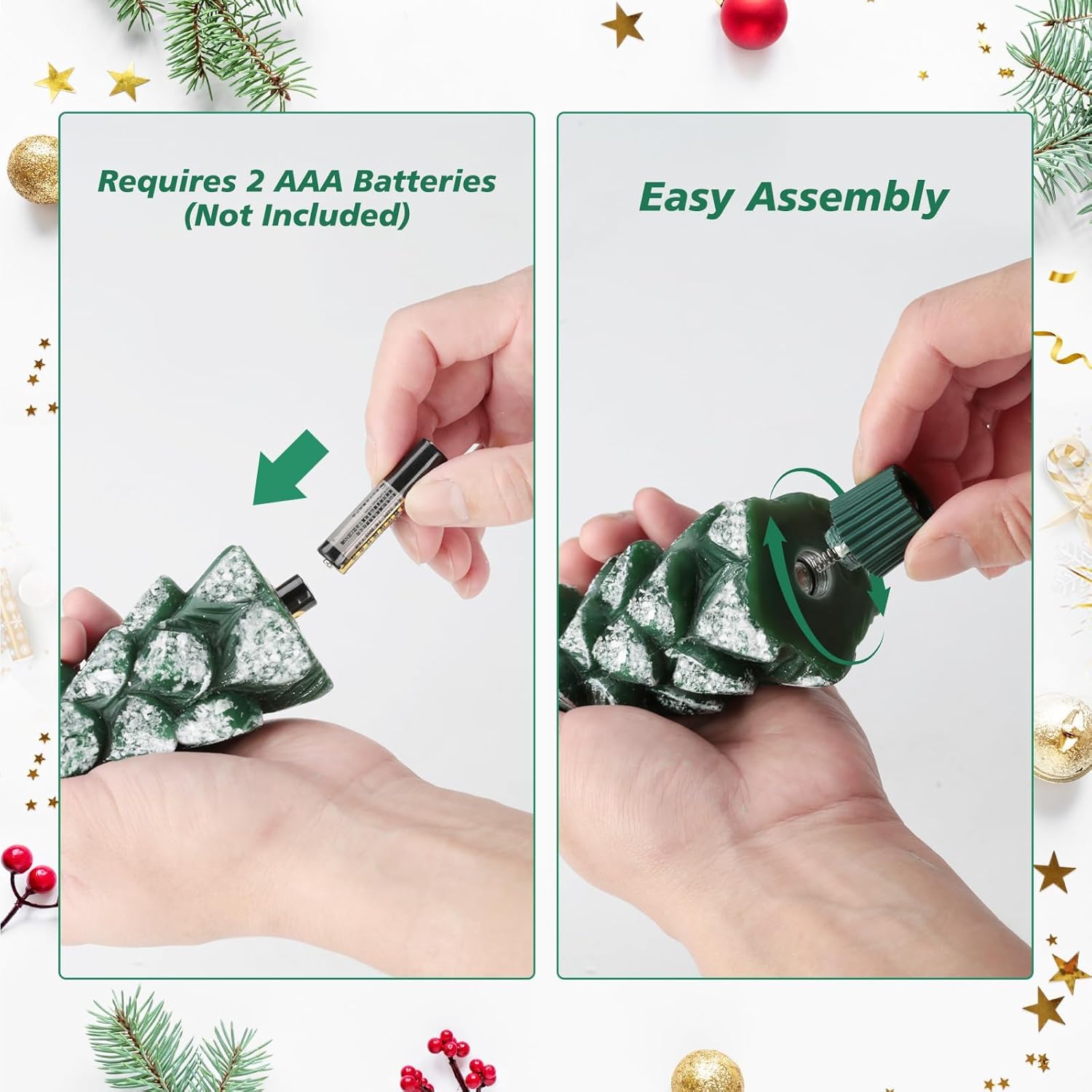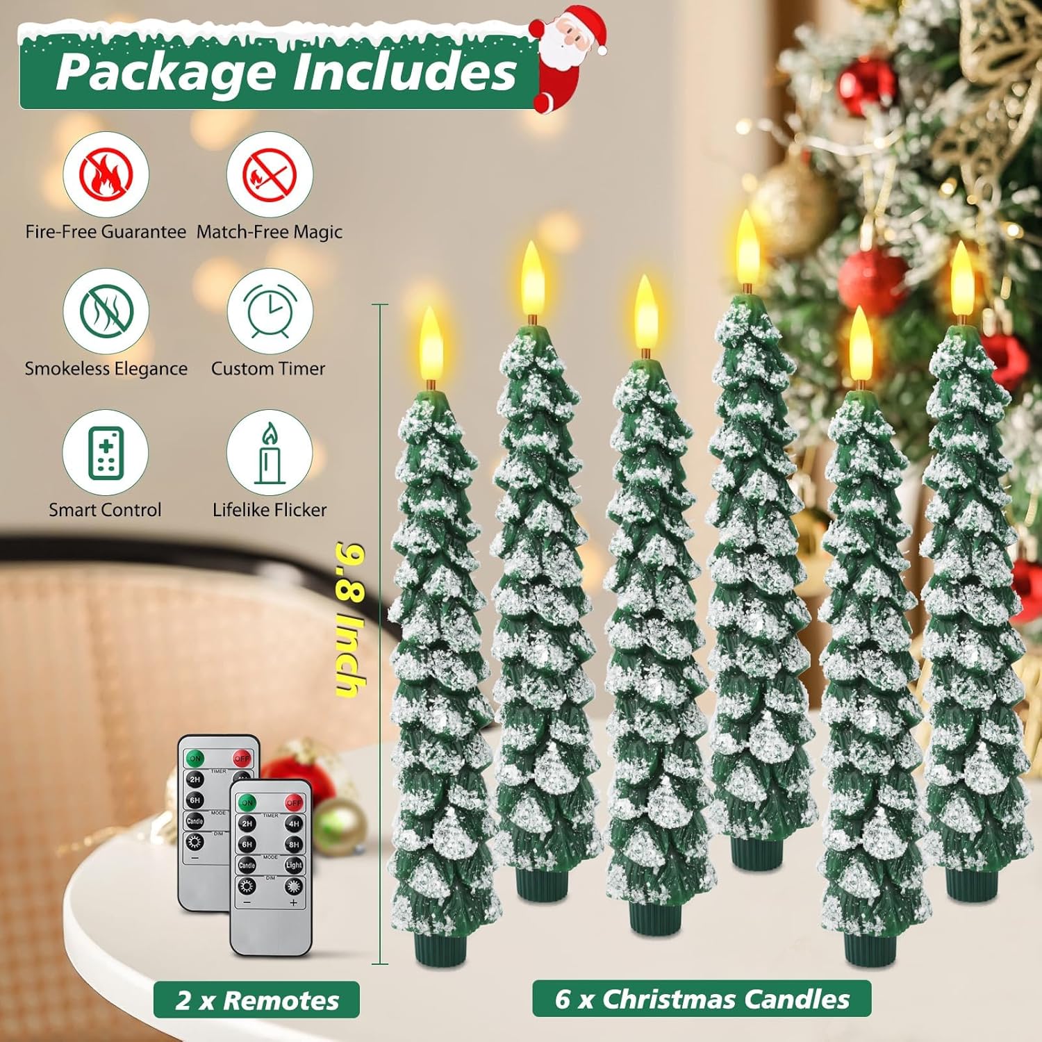 Festive Christmas Tree Candle Design – Each flameless candle is shaped like a mini Christmas tree, featuring detailed leaf textures and a charming snow-covered look. Adds instant holiday spirit to your living room, dining table, fireplace mantel, or windowsill.