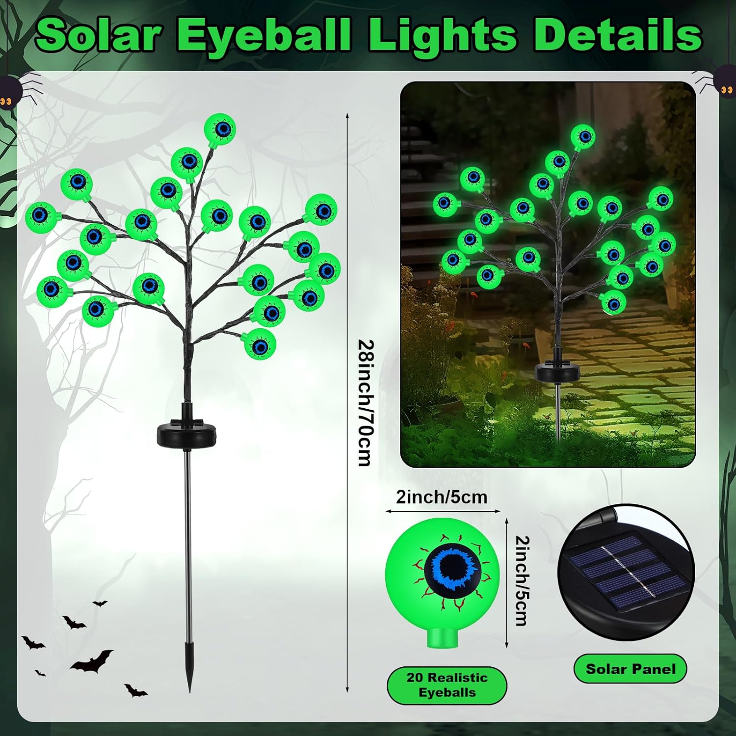 Solar Eyeball Lights: the 3D design features 20 flickering eyeballs for a more realistic look; The eyeball blend seamlessly with the eerie green glow, creating the illusion of a monster gazing from the dark, effortlessly creating a spooky atmosphere; Plus, it’s solar-powered and automatically illuminates at night, making it easy to create a Halloween lighting experience
