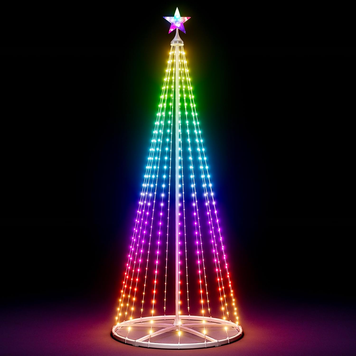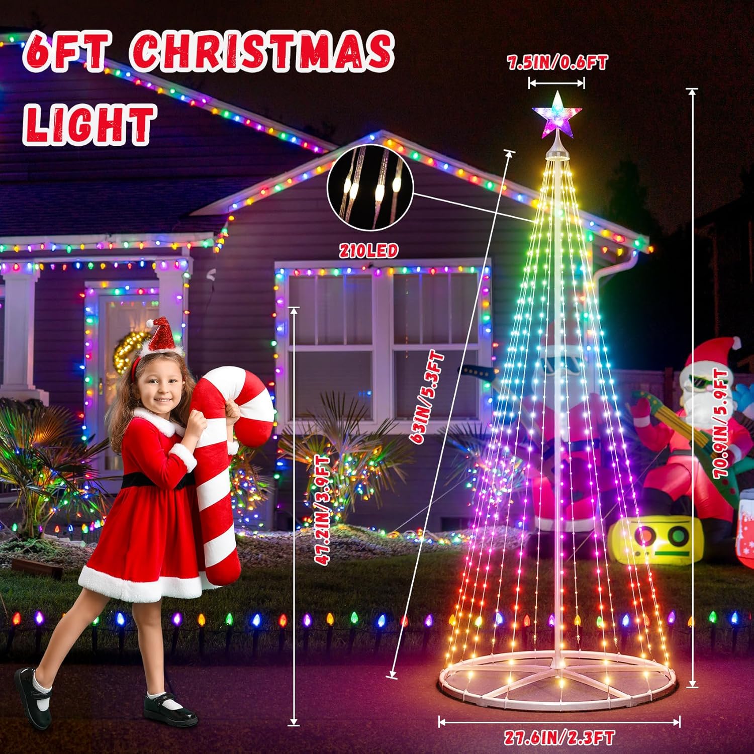 HIGH QUALITY: The Pole Christmas tree is made of 210 waterproof LED lights (PVC material), and comes with a reinforced ground stake. Small Christmas tree with lights is designed to meet U.S. standard, compatible with 120V voltage. The tree body is constructed from strong, rust-resistant metal, and led christmas cone tree also features Bluetooth and infrared functions, allowing it to connect with the app and remote control. The app, remote, and switch can control thousands of colors.