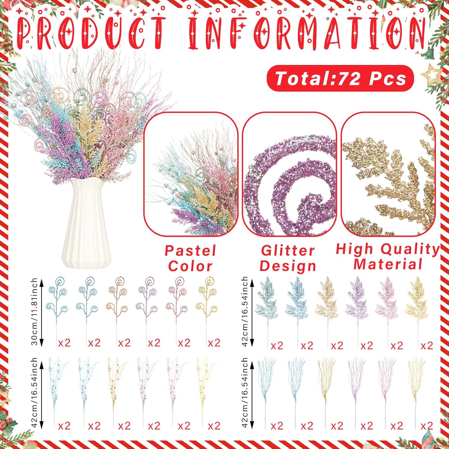 Adequate Quantity: if you purchase our products, you will receive 72 christmas tree picks, a total of 4 styles, rich styles, sufficient quantity can well meet your decoration needs during the Christmas period, making your Christmas decoration full of sweet atmosphere