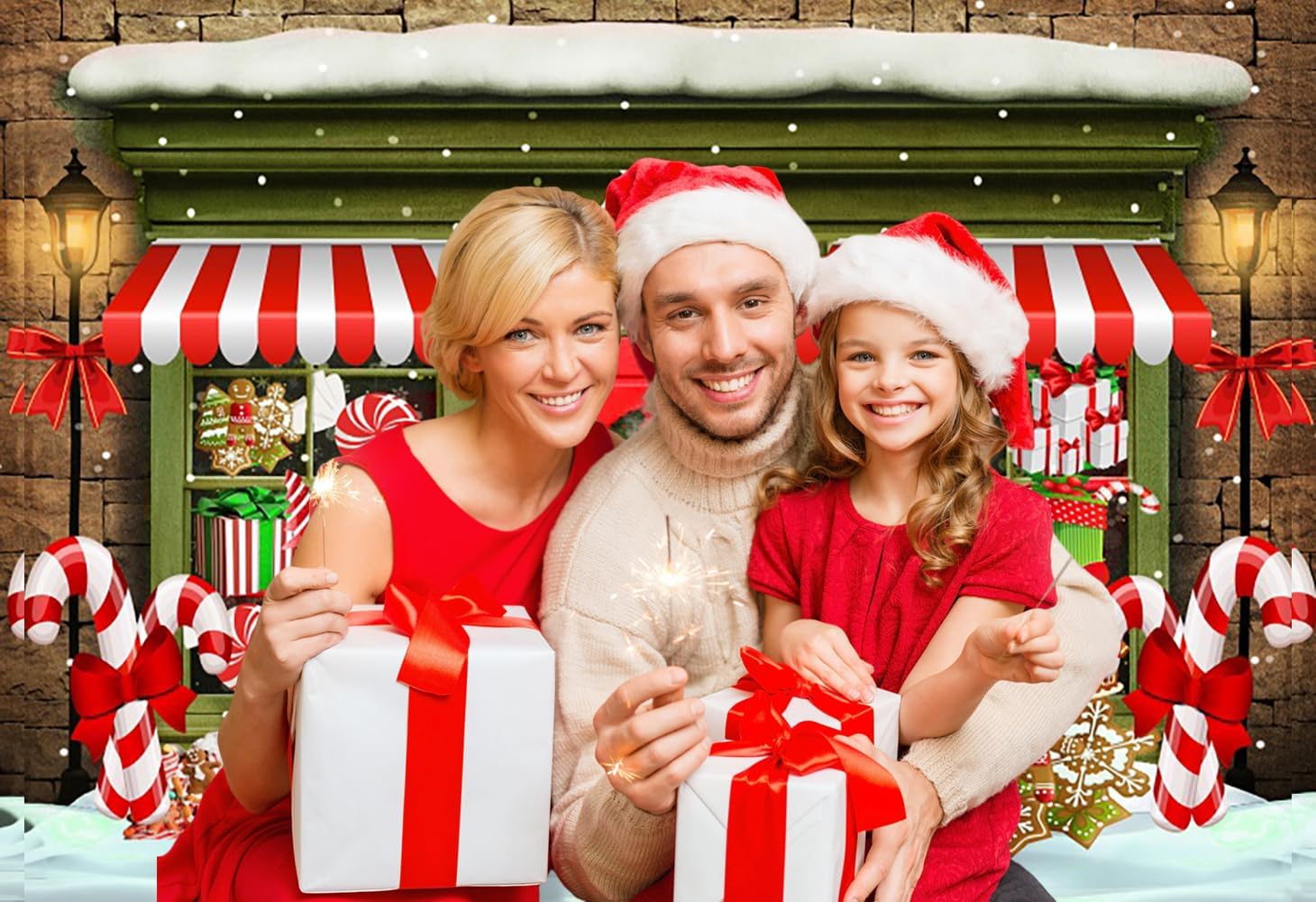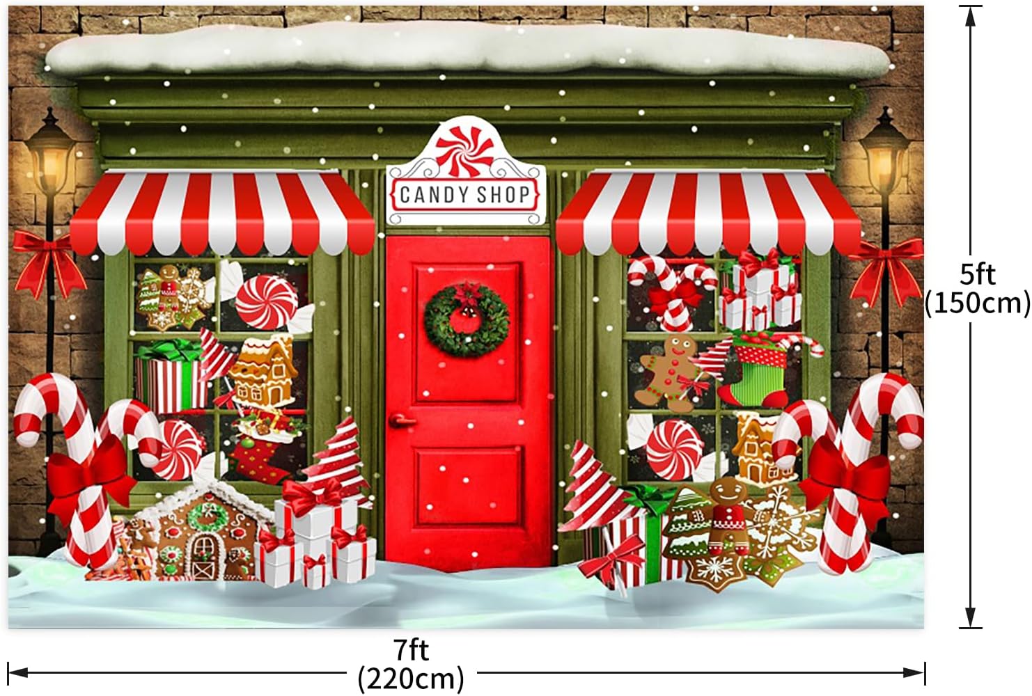 7×5 ft Red and Green Christmas Store Backdrop Santa Toys Display Xmas Day Photography Background Winter Family Holiday Party Banner Party Supplies Photo Booth Prop