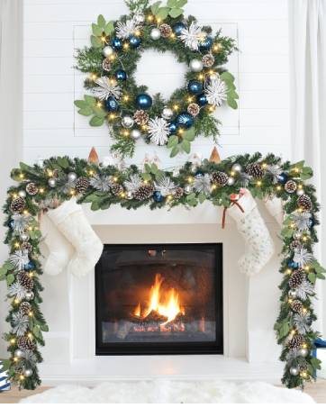 🎄[50 LED LIGHTS & 8 MODES]-Christmas Garland Prelit with 50 Led lights,There are 8 modes of the lights. Each Artificial garland requires 3 AA batteries (not included). The timer function will be activated at the time you turn on the lights, the garland lights will be 6 hours On and 18 hours Off each day automatically.They will not limited by the power cords,You can put it any where you want.