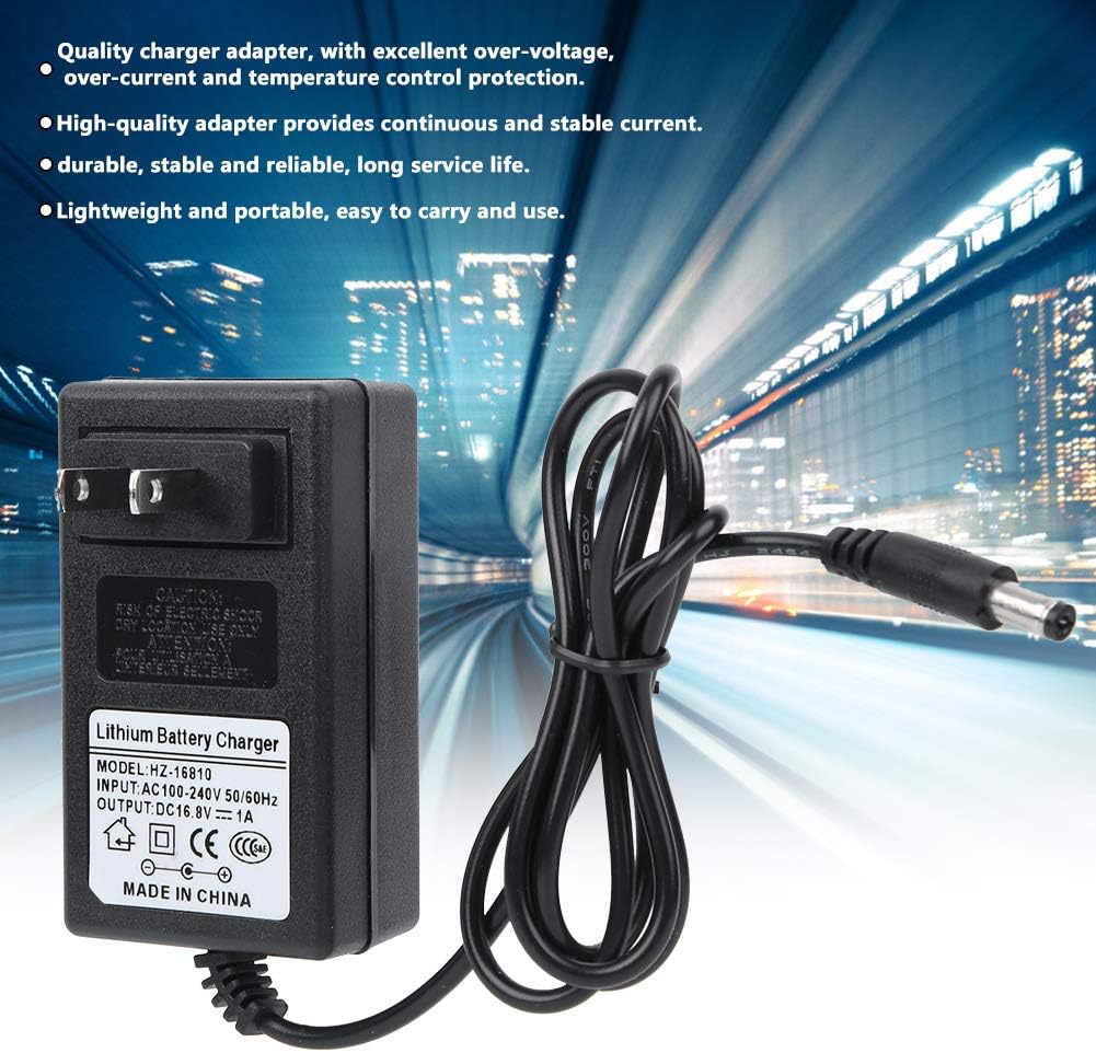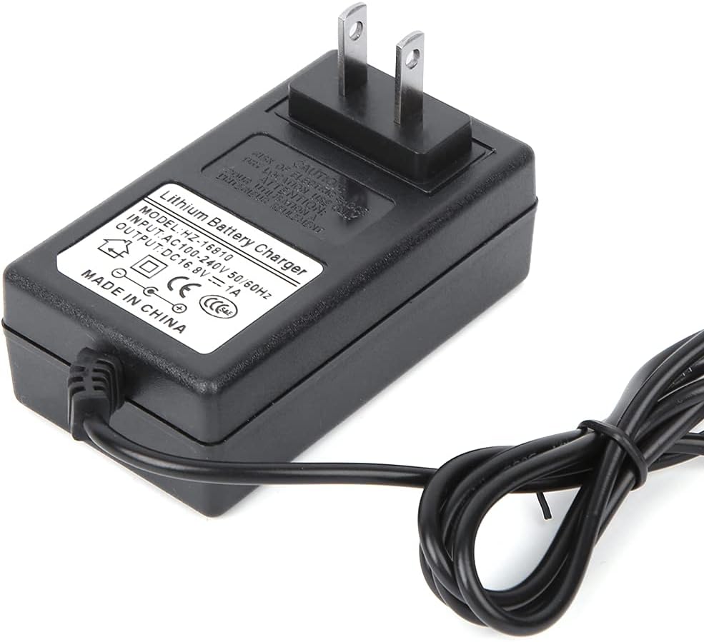 Input voltage (AC): 100V-240V Input frequency range: 50-60 Output voltage (DC): 16.8V Output current: 1A LED turn light: ≤0.2A (Charging current is less than or equal to the set current, the charger will change from red light to green light, and charging is completed.)