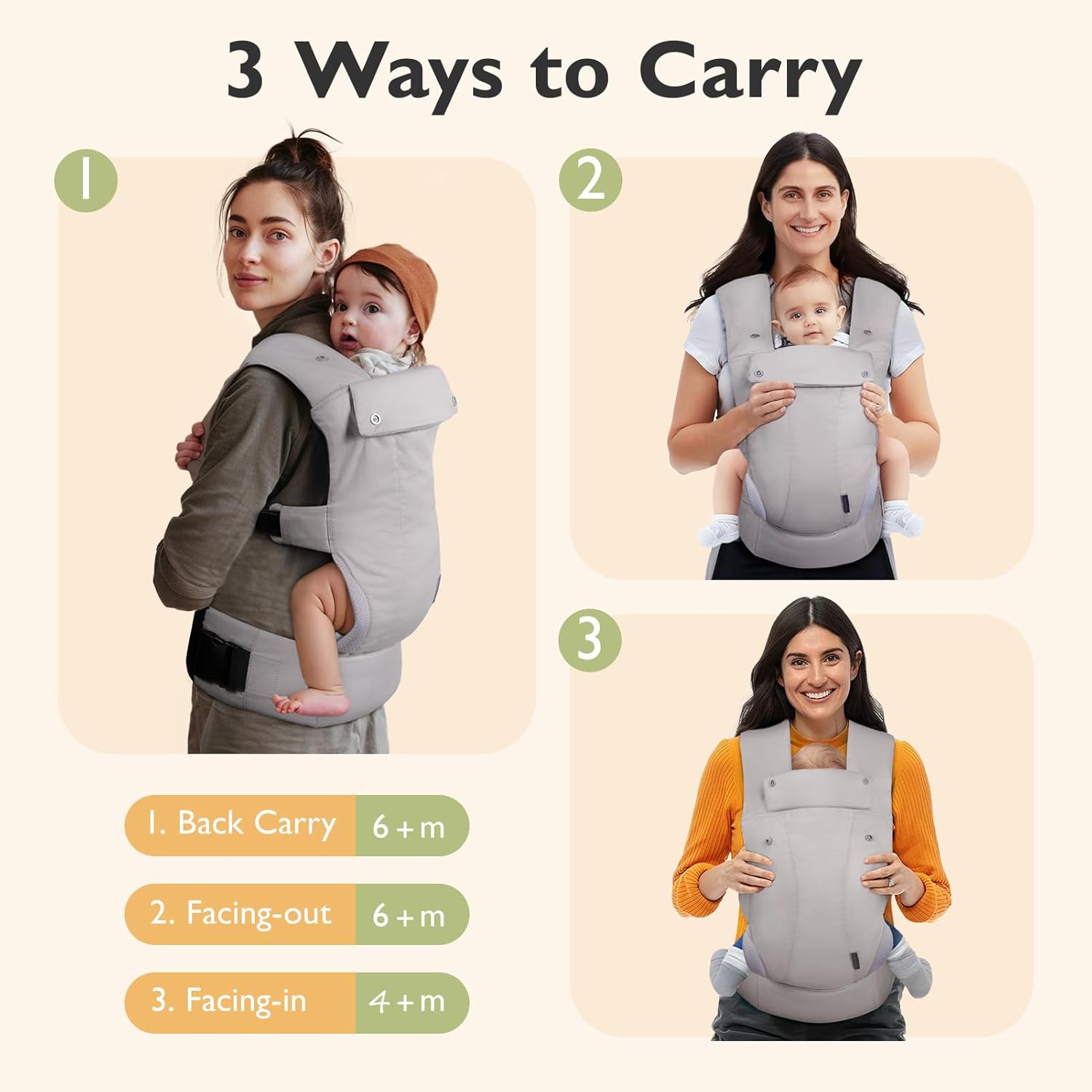 Hand-Free Parenting: The 3-in-1 baby carrier has adjustable shoulder straps to accommodate various carrying positions, meeting the needs of babies of different body types. It also includes a drawstring storage bag for easy packing and access when traveling or strolling outdoors