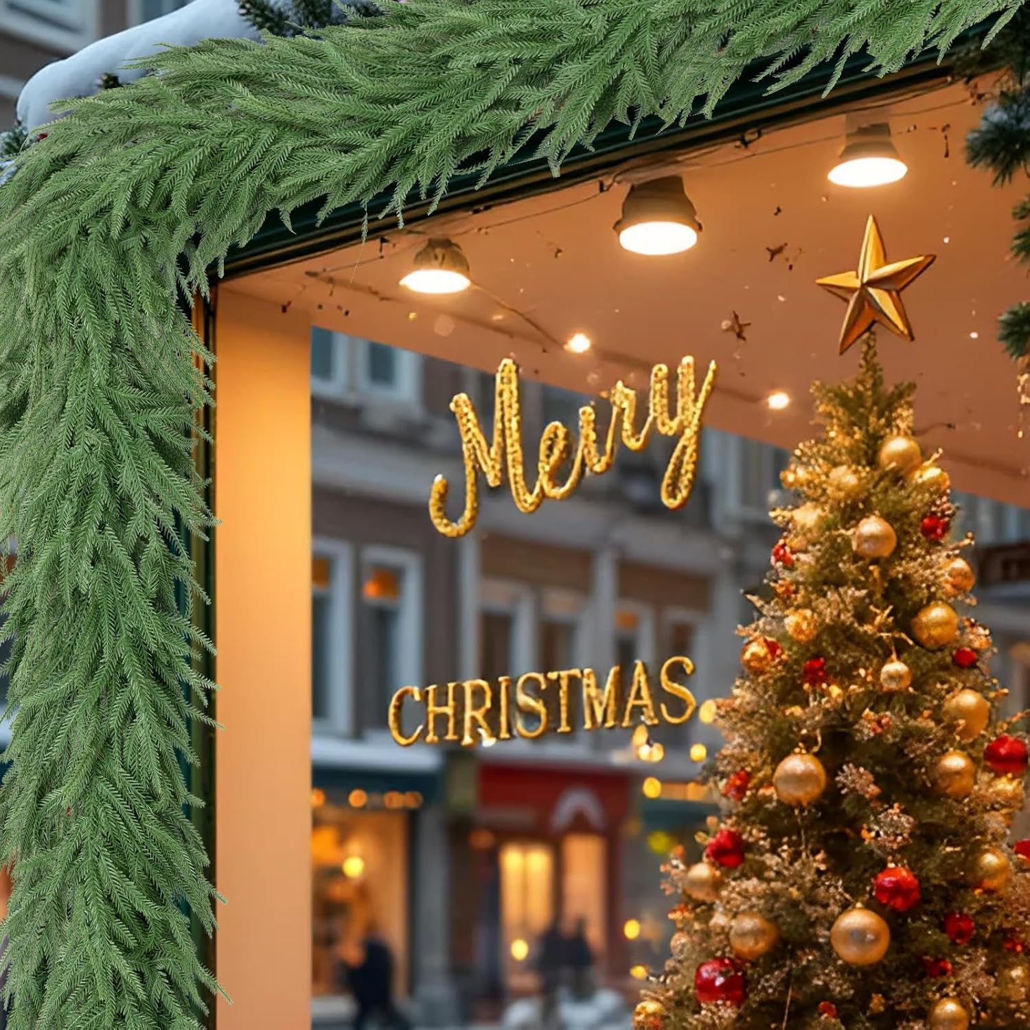 Real Touch Christmas Garlands: Made from premium solf plastic material, these norfolk pine garlands are very flexible and can be shaped to fit any space; Whether you wrap them around a banister, drape over a mantel, or hang along a window, they will hold their natural shape beautifully