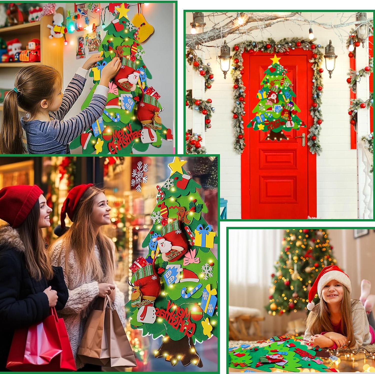 EASY TO ASSEMBLE AND DECORATE: This felt christmas tree is simple in design and easy to assemble. You just need to stick the decorations on the hooks and hang it on the wall. Stick the decorations on and the light strings surround the tree to add color, easy to operate, even children can do it easily