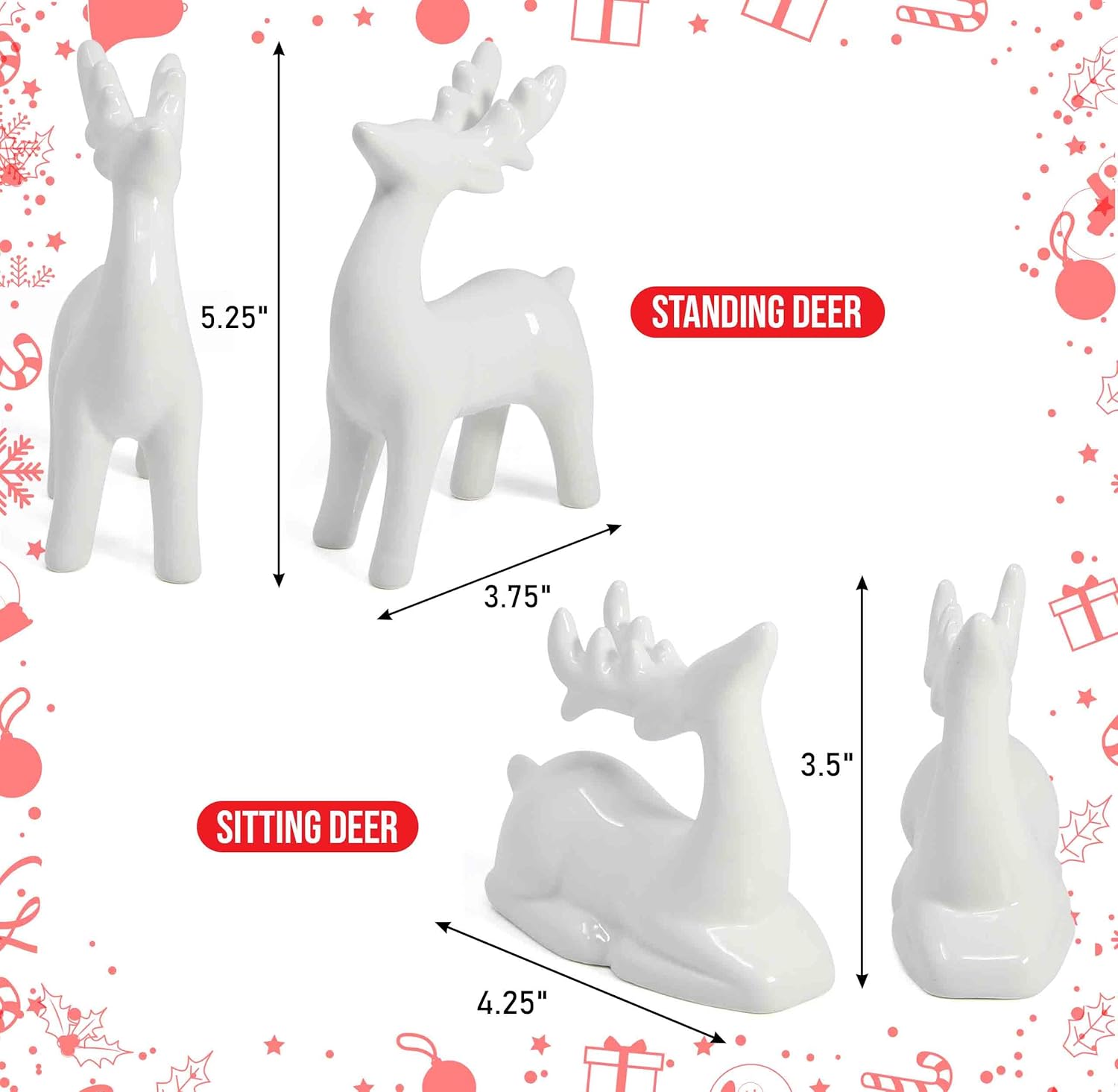 Complete Set: Includes 2 Pack elegantly crafted mini porcelain reindeer figurines; the standing deer measures 5.25″ height x 3.75″ width & the sitting deer measures 3.5″ height x 4.25″ width; a great addition to your mantel, tabletop & shelf decor