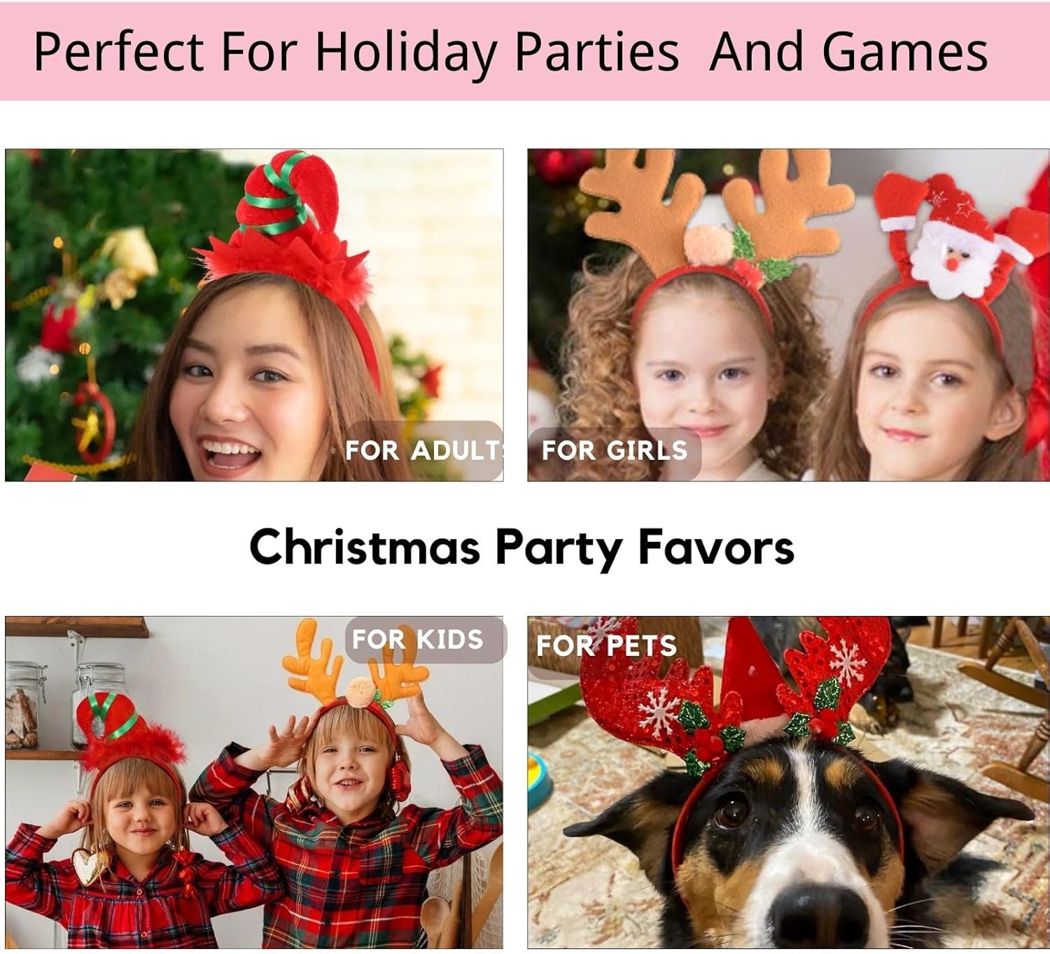 SEVEN STYLE 12 PCS Holiday Headbands,Cute Christmas head hat toppers,Great Fun and Festive for Christmas Party Favors Holiday Favors Photos Booth