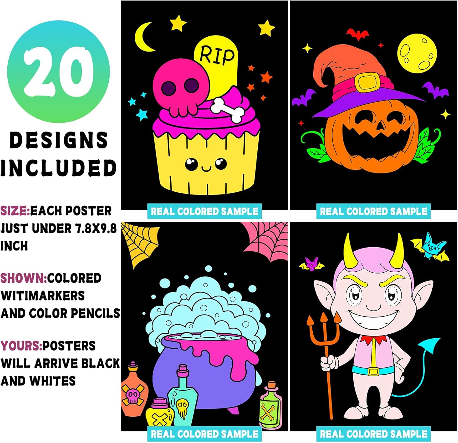 IDEAL GIFT: These coloring posters make creative gifts for Halloween parties, family gatherings, group events and birthday parties. After unleashing your creativity and imagination, the finished posters can be used to decorate the walls of living rooms, bedrooms, bathrooms and offices to show their full value.