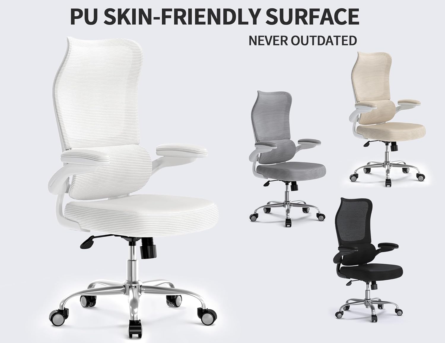 MESH BACKED & LEATHER CUSHION: The mesh office chairs can promote air circulation, prevent sweating, and reduce back stuffiness; High quality PU leather seats for home desk chairs can prevent scratches, stains, and cracking from overflowing, making them more durable and suitable for long-term sitting