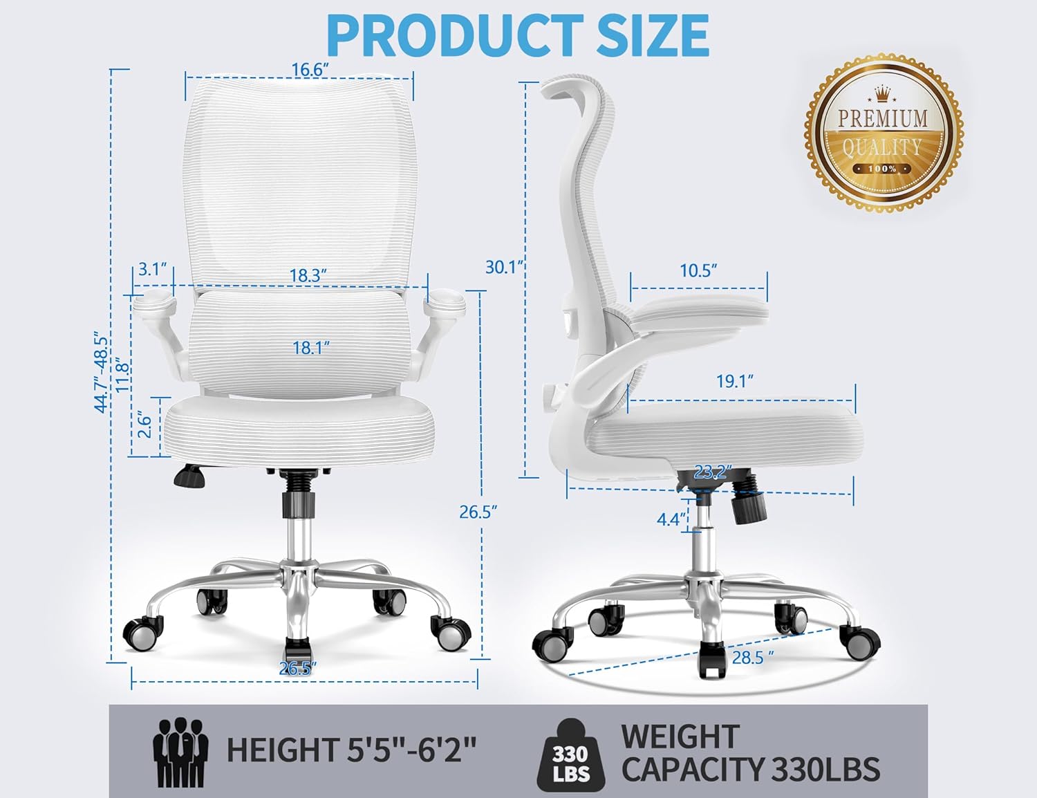 EASY TO ASSEMBLE, LONG WARRANTY: The office desk chair has fully equipped backrest and tools, 15 minute easy installation. The office chairs warranty is up to 5 years and we provide you with 1V1 and 27h response service to ensure a good experience