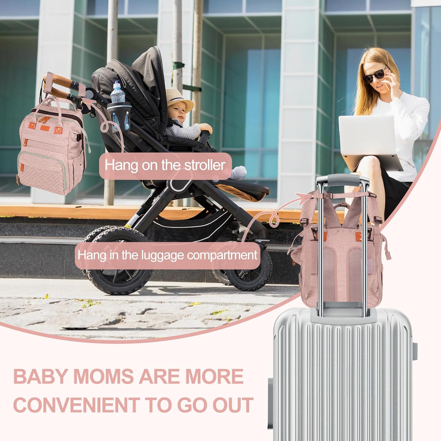 large diaper bag backpack,baby bag with changing station for Boys Girls,Multifunctional Diaper Bag,Mommy Bag With USB Charging Port(Pink)