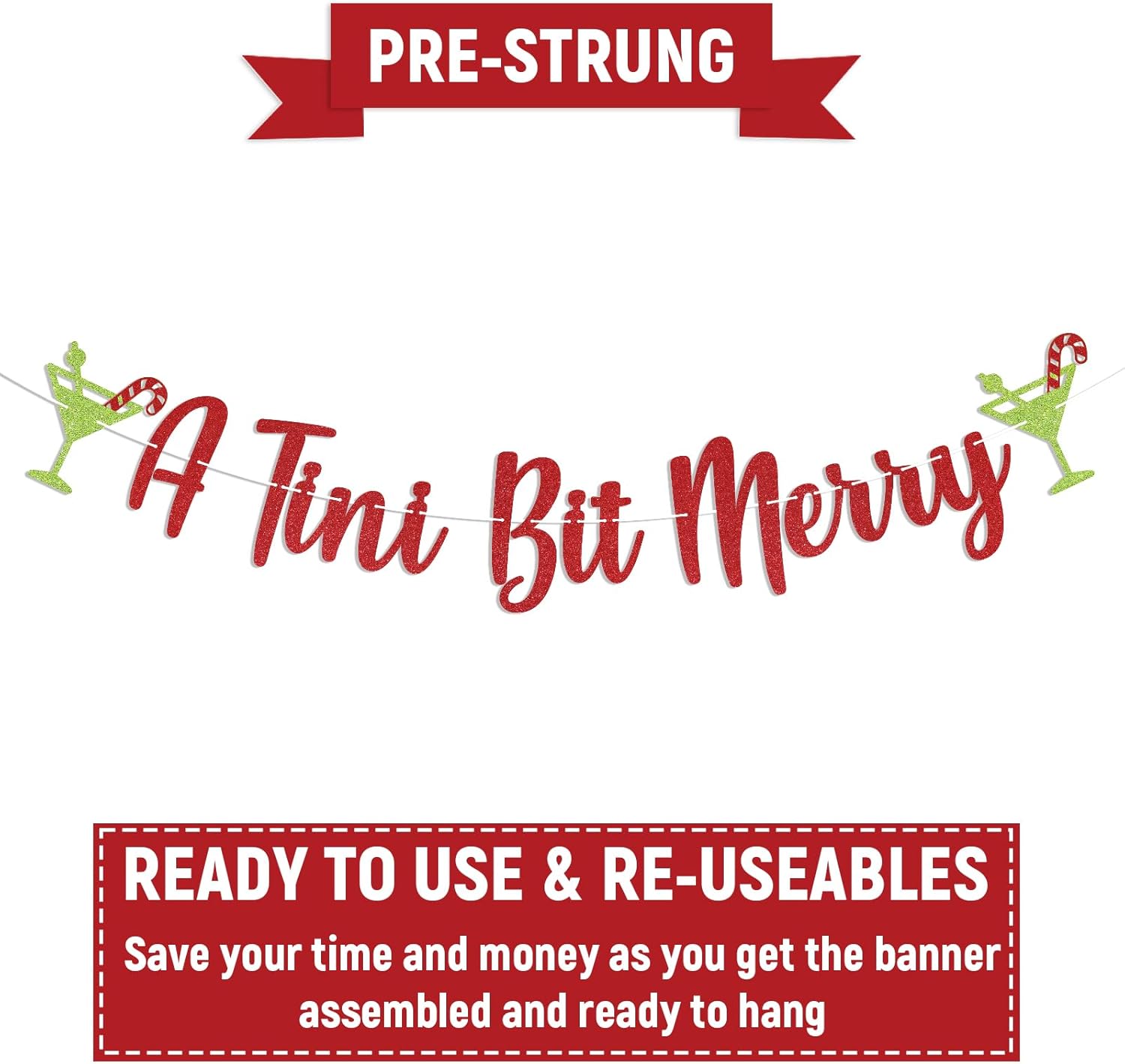 1 x “A Tini Bit Merry”banner in red glitter