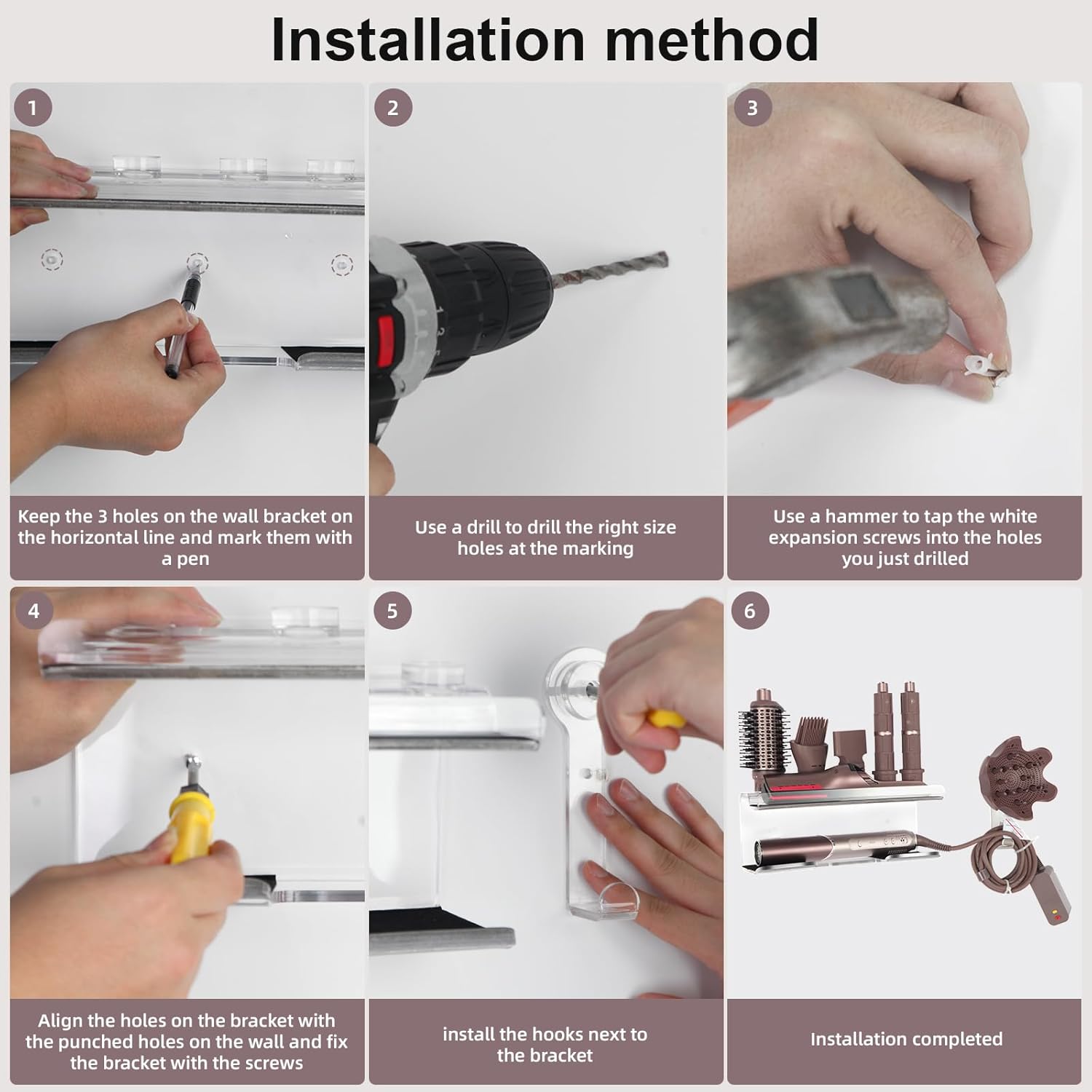 Acrylic Wall Mount Holder for Shark FlexFusion, Flexfusion Organizer for Shark HD641S HD641 HD642 HD642S, Flex Fusion with Cord Hanger for Accessories Curlers Brushes Diffuser and Attachments